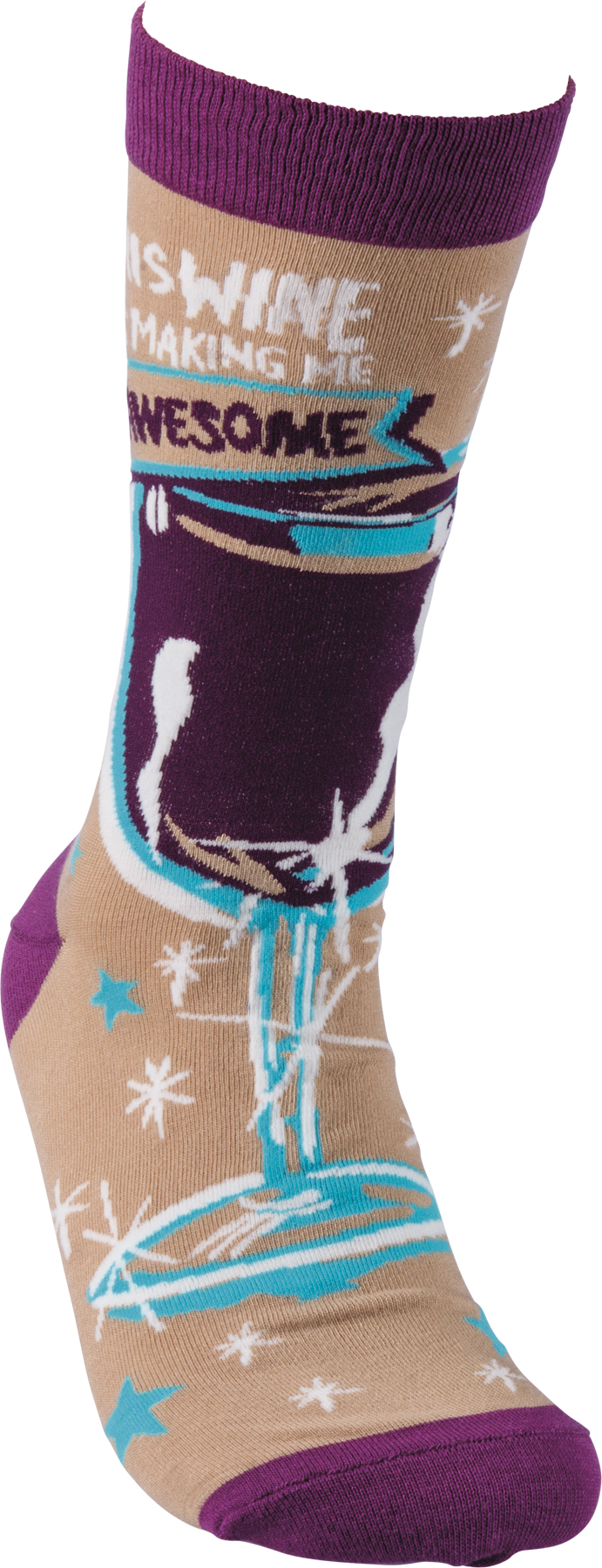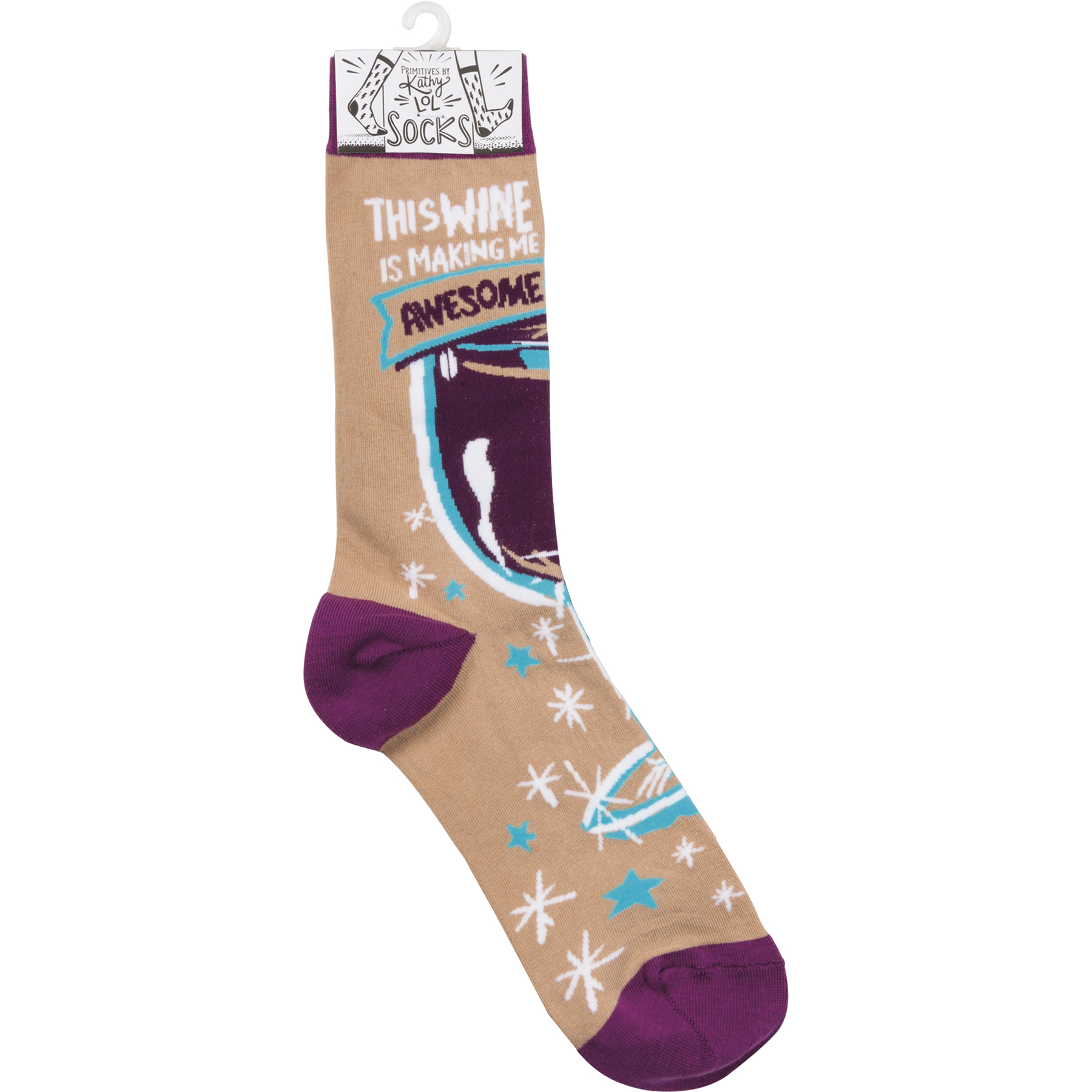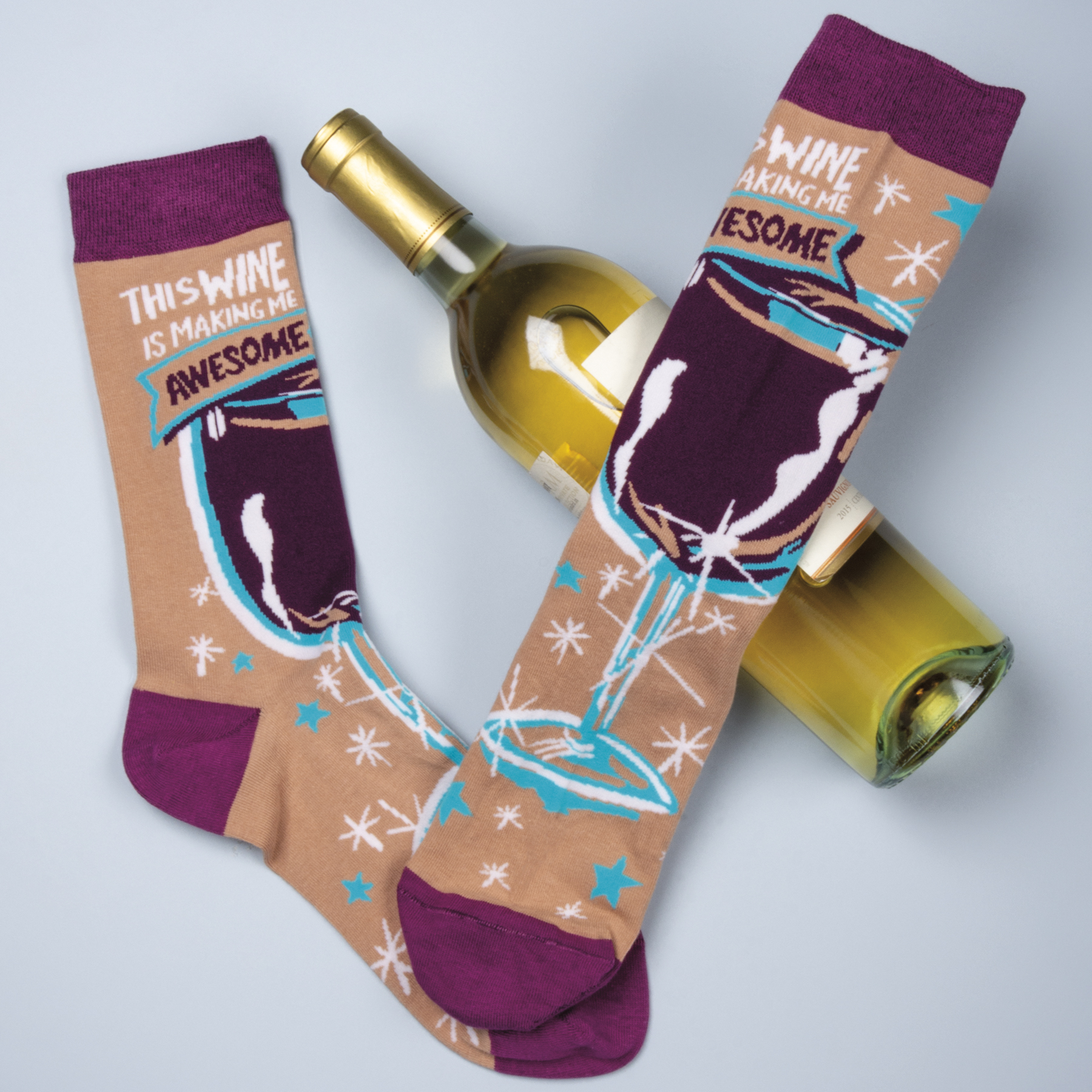 These colorful socks feature woven designs with coordinating "This Wine Is Making Me Awesome" sentiment. Cotton, nylon, spandex. One size fits most.