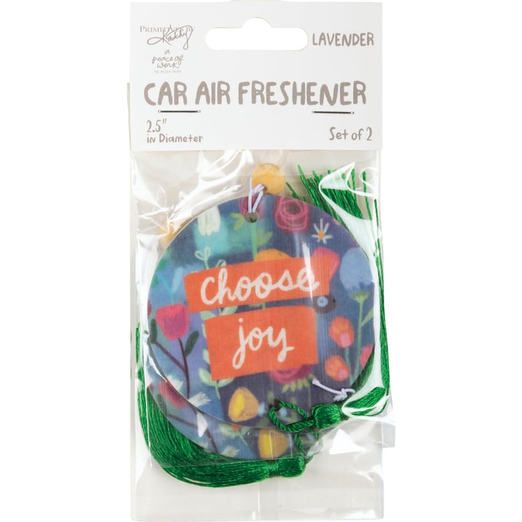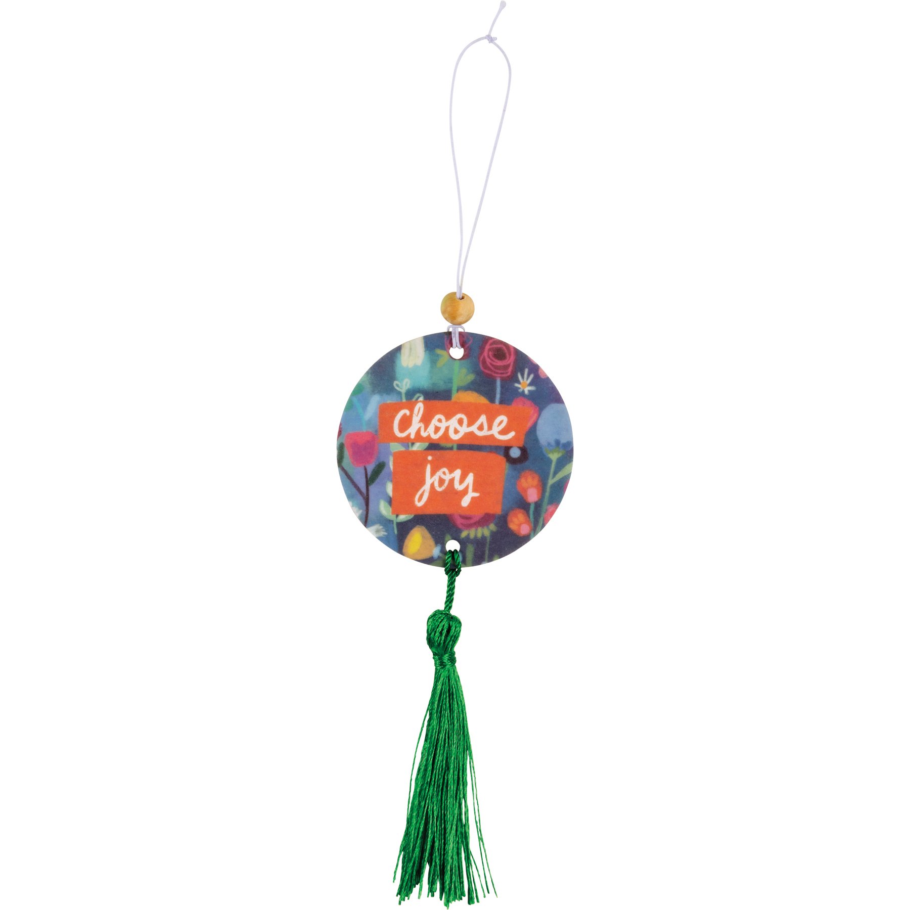 A set of two double-sided air fresheners from our Inspiration & Blooms Collection features "Choose Joy" sentiment with vibrant floral designs. Set features decorative tassels and is perfect to hang in the car for a pleasant lavender aroma. Our Choose Joy air freshener set is packaged on a header card to easily hang.