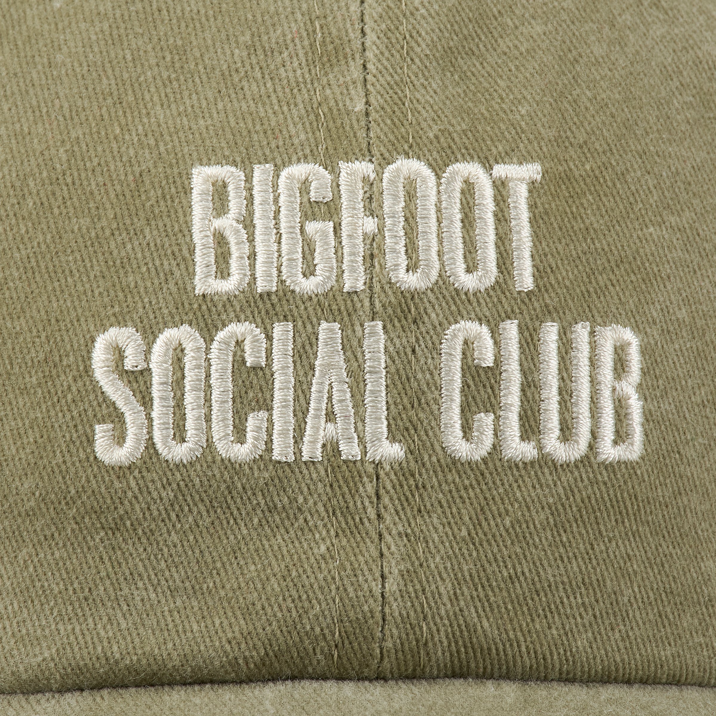 A stonewashed tan baseball cap from our Lake & Cabin Collection displaying a fun bigfoot themed sentiment in a classic box sign style that reads "Bigfoot Social Club." This bigfoot hat features a fully embroidered design for added detail. Our Bigfoot Social Club baseball cap is one size fits most with an adjustable metal buckle to create the perfect fit. Hand wash only. A fun bigfoot themed gift perfect for an outdoor accessory.