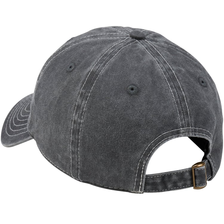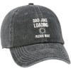A stonewashed black baseball cap from our Father's Day Collection displaying a humorous sentiment that reads "Dad Joke Loading - Please Wait" with loading wheel design in between phrases. Cap features embroidered sentiment and designs for added detail. Our Dad Joke hat is one size fits most with an adjustable buckle closure to create the perfect fit. A fun accessory to wear for everyday use. Hand wash only.