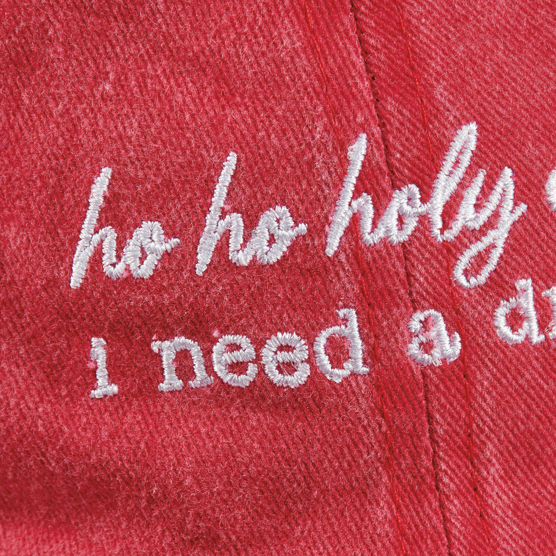 A stonewashed baseball cap from our Christmas Collection displaying a holiday red and white color palette with sassy "Ho Ho Holy Shit I Need A Drink" sentiment. Cap features embroidered sentiment for added detail. Our Ho Ho Holy Need A Drink baseball cap is one size fits most with an adjustable buckle closure to create the perfect fit. A fun accessory option for seasonal events or gifting. Hand wash only.