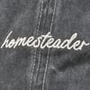 A stonewashed black baseball cap from ourĀ Homestead Collection featuring an embroidered sentiment that reads "Homesteader" perfect for celebrating the homestead lifestyle. Sentiment is embroidered for added detail. Our Homesteader hat is one size fits most with an adjustable buckle closure to create the perfect fit. A farm-themed baseball cap perfect for an everyday accessory. Hand wash only.