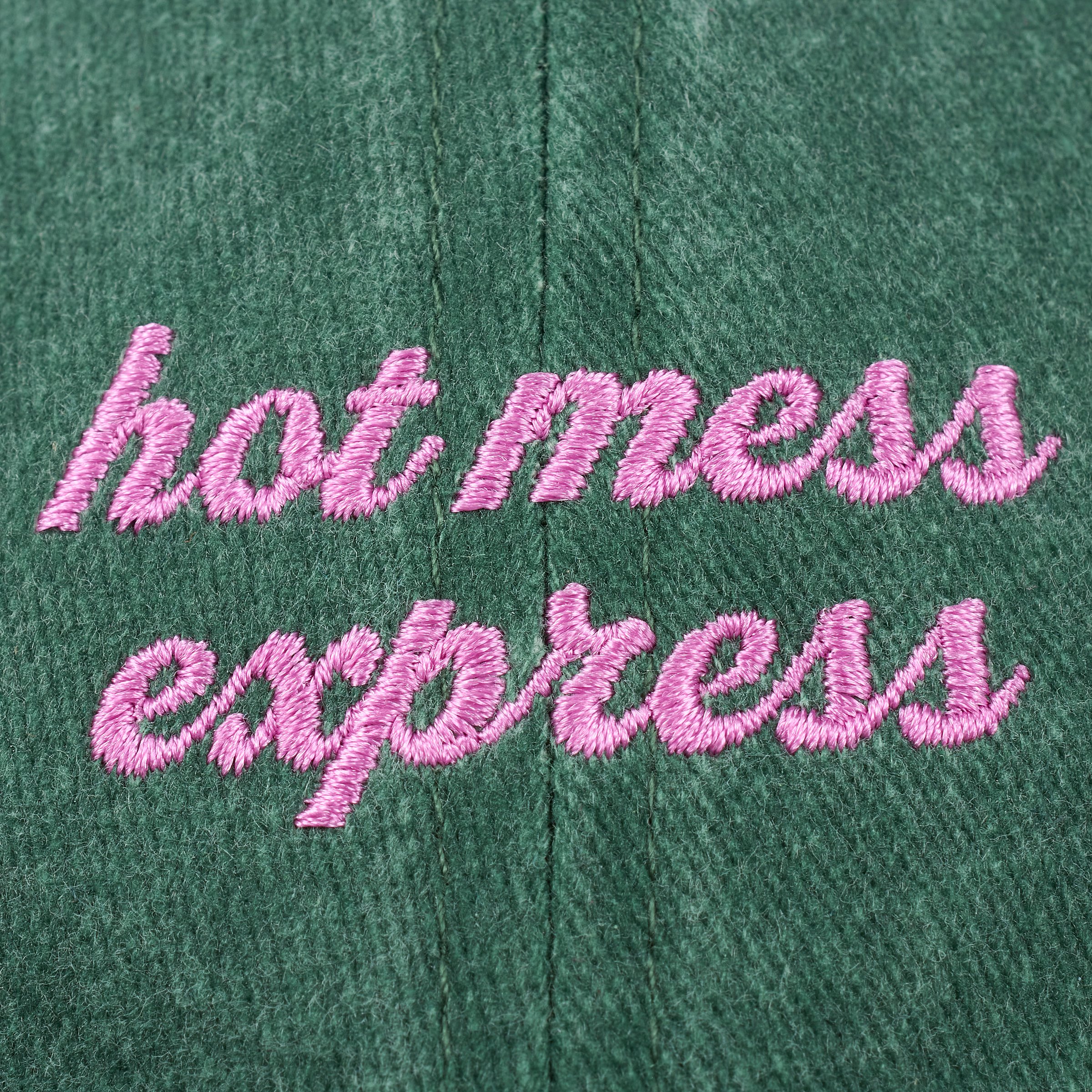 Anyone else done with keeping every little thought to themselves? Let 'em know exactly what's going on under this green baseball cap displaying an honest sentiment that reads "Hot Mess Express." Relatable sentiment is fully embroidered on stonewashed cotton that gives this casual everyday hat a naturally worn look. Questionables baseball caps are one size fits most with an adjustable metal buckle to create the perfect fit. Hand wash only. Our Hot Mess Express baseball cap is perfect for everyday expression and letting everyone know a little, or a lot, about yourself.
