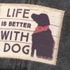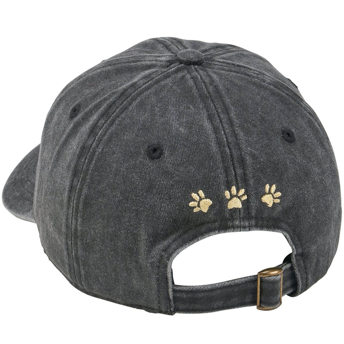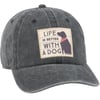 A stonewashed black baseball cap from ourĀ Pet Collection featuring a stitched art panel on the front displaying a rustic pet inspired sentiment that reads "Life Is Better With A Dog" with embroidered paw prints on the back. Art panel features embroidered border for added detail. Our With A Dog hat is one size fits most with an adjustable buckle closure to create the perfect fit. A fun pet-themed baseball cap perfect for an everyday accessory. Hand wash only.