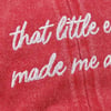 A stonewashed baseball cap from our Christmas Collection displaying a holiday red and white color palette with humorous "That Little Elf Made Me Do It" sentiment. Cap features embroidered sentiment for added detail. Our Little Elf Made Me Do It baseball cap is one size fits most with an adjustable buckle closure to create the perfect fit. A fun accessory option for seasonal events or gifting. Hand wash only.