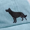 A cotton baseball cap from our Pet Collection with an adjustable brass closure. Features an embroidered german shepherd design on the front and "Love My German Shepherd" sentiment on the reverse side. Cap is one size fits most and hand-wash only. The Love My German Shepherd hat coordinates with our Best German Shepherd Ever Pet Bandana for matching dog and owner outfits.