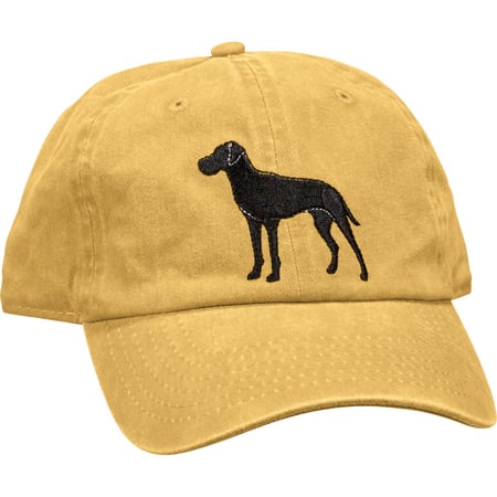 A cotton baseball cap from our Pet Collection with an adjustable brass closure. Features an embroidered great dane design on the front and "Love My Great Dane" sentiment on the reverse side. Cap is one size fits most and hand-wash only. The Love My Great Dane hat coordinates with our Best Great Dane Ever Pet Bandana for matching dog and owner outfits.