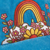 A blue baseball cap from our Wood Burning Collection displaying a vibrant rainbow and flowers design on front replicated from original wood burned art and inspirational "Think Happy Thoughts" sentiment on back. Cap features fully embroidered design for textured detail. Our Think Happy Thoughts baseball cap is one size fits most with an adjustable buckle closure to create the perfect fit. A stylish accessory option for daily activities. Hand wash only.