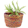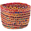 A stylish bin from ourĀ Primitive Collection displaying a colorful chindi inspired design made by weaving various fabrics into the construction of the product to create a unique combination of colors and textures while repurposing leftover fabric. Bin design features a mix of braided jute and fabric stripes. Our Chindi Braided bin is a stylish home accent perfect for organizing household items. Accessories pictured not included.