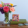 A wooden block sign featuring a vibrant color palette with whimsical floral designs and inspirational words. Sentiment reads "A Kind Heart Is A Brave Heart". Wooden wall art is easy to hang via predrilled keyhole slot or can free-stand alone. Features natural wood sides.