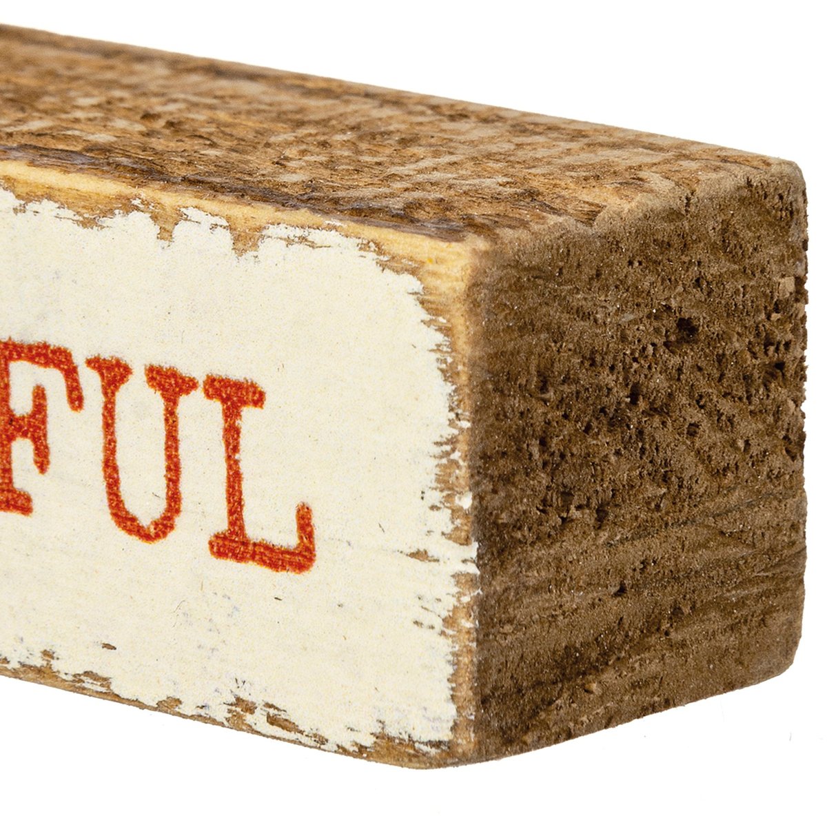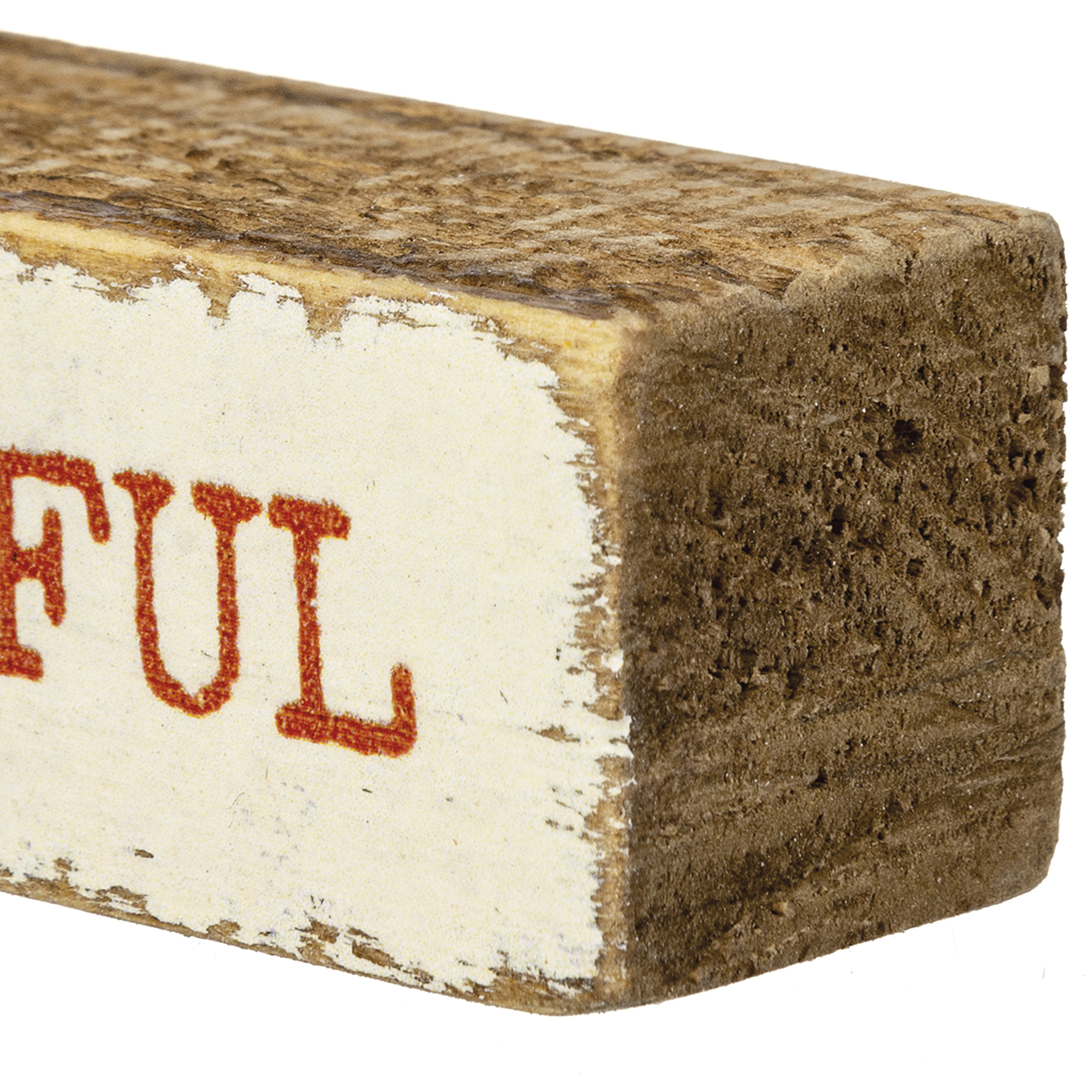 A wooden block sign from our Fall & Harvest Collection features a "Be Thankful" sentiment in orange on a cream background. This Be Thankful wood sign is easy to hang via predrilled keyhole slot or can free-stand alone.