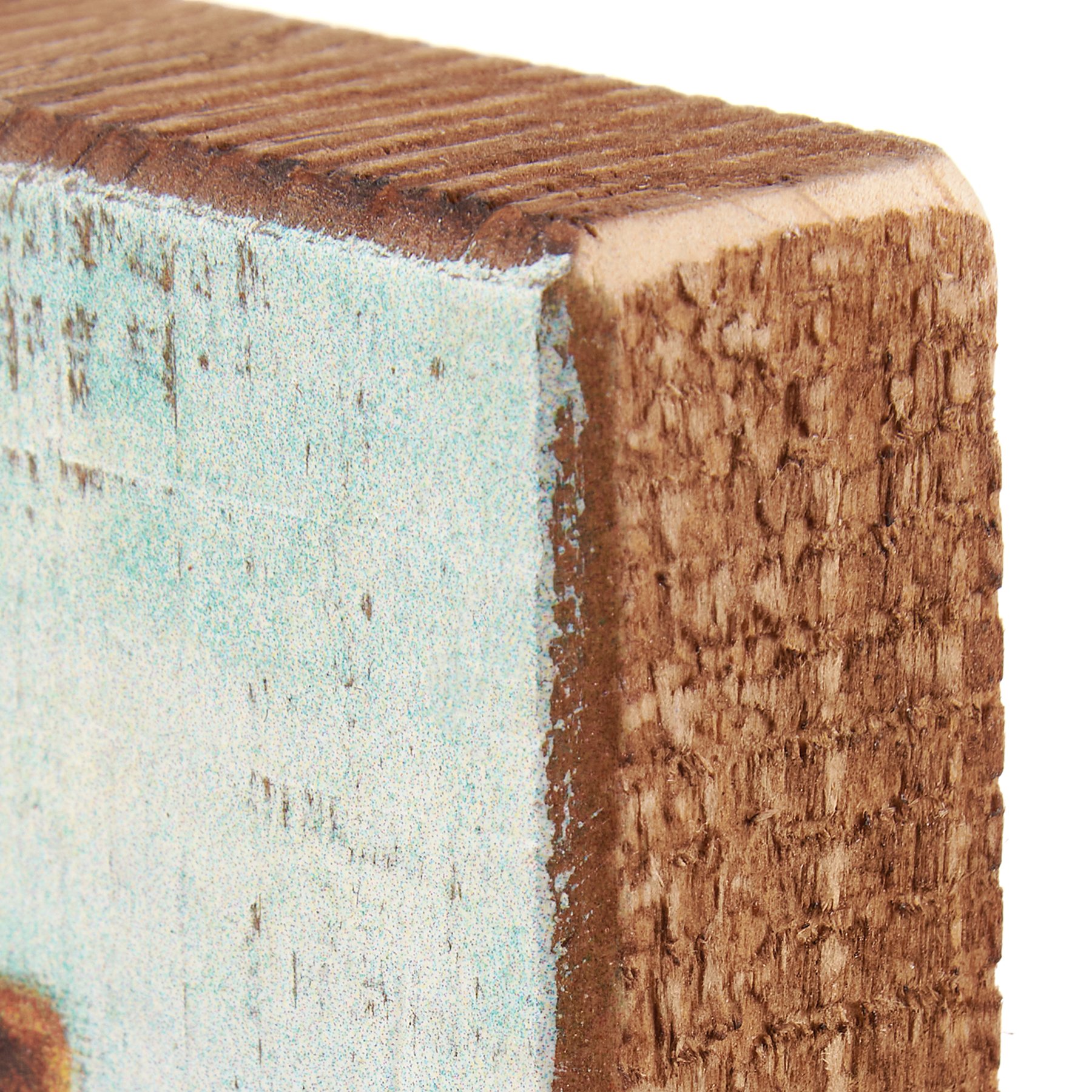 A delightful wooden block sign from our Easter & Spring Collection displaying a calf in a field of flowers. Design is replicated from original artwork painted onto burlap canvas, giving the art a unique depth and texture. Sign features natural wood sides for added interest. Our Calf In Flowers block sign is easy to hang via predrilled keyhole slot or can free-stand alone.