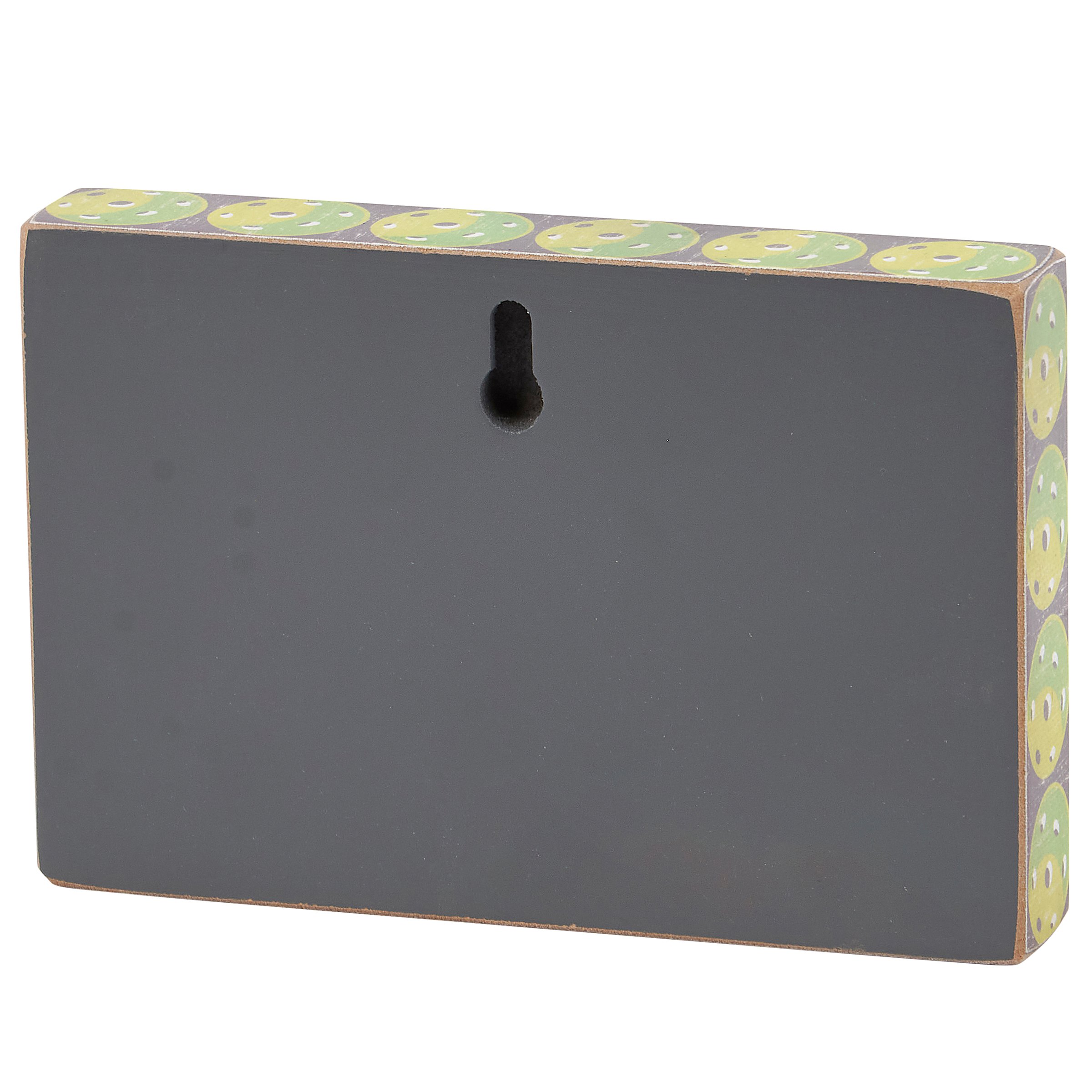 A wooden block sign from our Sports Collection displaying a fun pickleball inspired sentiment in a classic box sign style that reads "A Day Without Pickleball Wouldn't Kill Me But Why Risk It." This funny pickleball sign features a coordinating gray color and pickleball pattern along the sides. Our Day Without Pickleball sign is easy to hang via a predrilled keyhole slot on the back or can free-stand on a flat surface for display. A fun pickleball-themed gift that can be easily displayed in any home or work space. Not eligible for discounting.