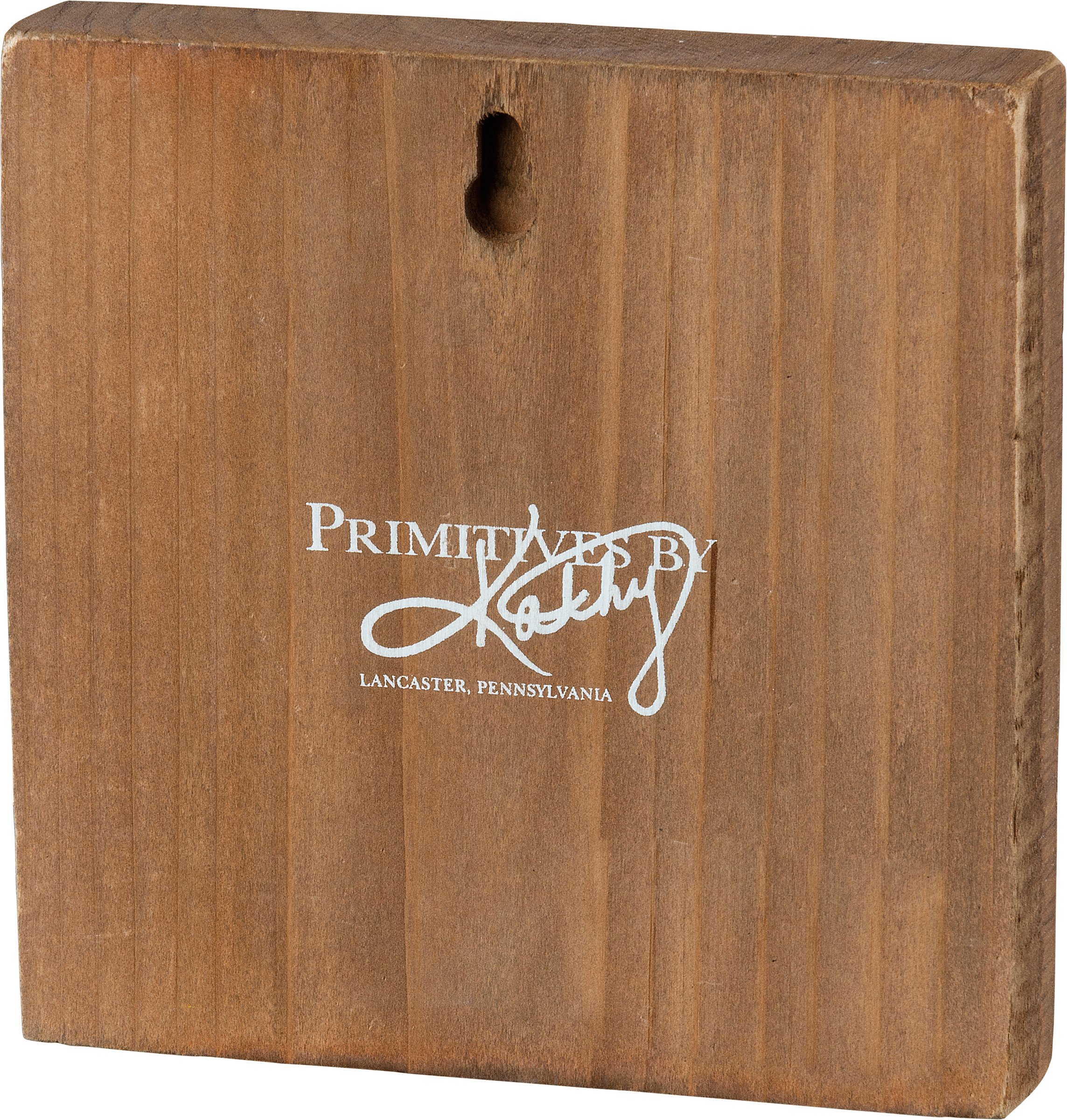 A wooden block sign featuring a duckling in a field and dandelion details. Design is replicated from original artwork painted onto burlap canvas, giving the art a unique depth and texture. Hangs easily by predrilled back keyhole or can free-stand alone.