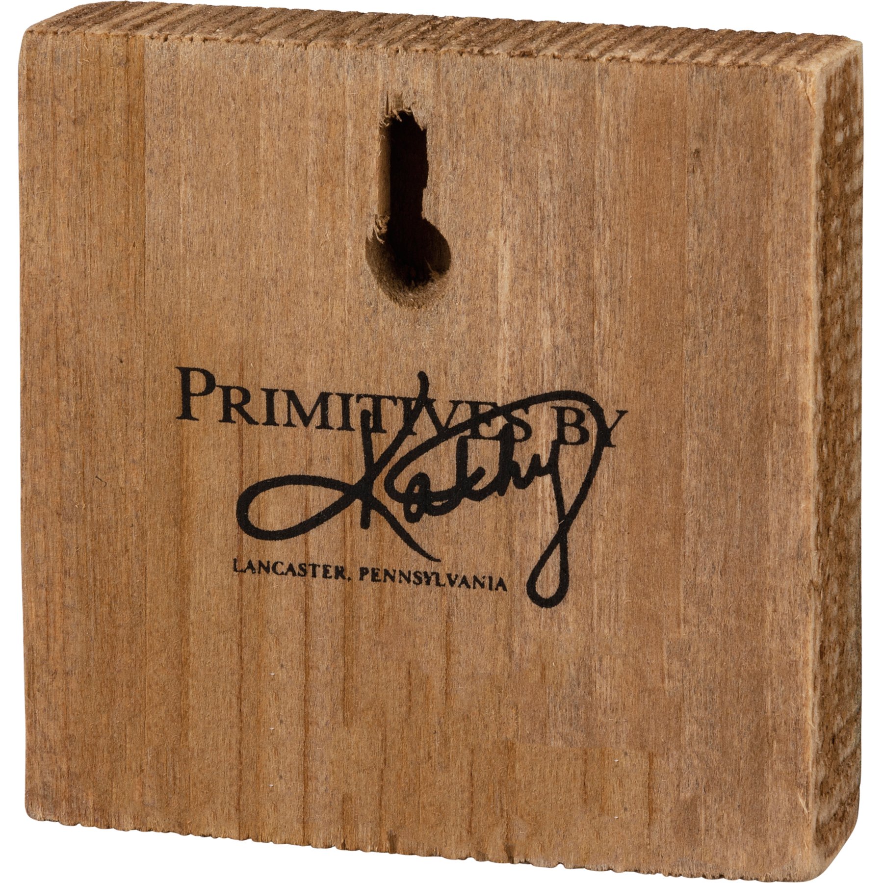 A wooden block sign featuring a duckling wearing bunny ears. Design is replicated from original artwork painted directly onto burlap canvas, giving a unique depth and texture to the art. Easy to hang via predrilled keyhole slot or can free-stand alone.