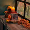 A wooden block sign from our Fall & Harvest Collection displaying a hand painted fall scene of a farm wagon with pumpkins and autumn flowers. Design is replicated from original artwork painted onto burlap canvas, giving the art a unique depth and texture. Seasonal block sign features distressed details with coordinating natural wood on the sides and back. Our Fall Farm Wagon sign is easy to hang via predrilled keyhole slot or can free-stand alone. A rustic seasonal home accent that can be easily displayed in any home or work space.