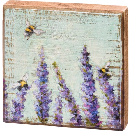 A wooden block sign from our Garden Collection depicting a field of lavender. Design is replicated from original artwork painted onto burlap canvas, giving the art a unique depth and texture. Our lavender field sign is easy to hang via predrilled keyhole slot or can free-stand alone. Not eligible for discounting.