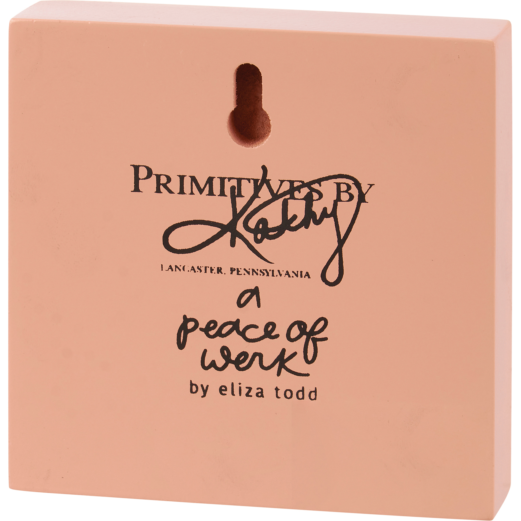 An inspirational wooden block sign from our Mother's Day Collection displaying a vibrant hand painted floral design with rainbows and loving sentiment. Hand illustrated sentiment reads "Mom - A Small Word That Means So Many Big Things." Sides feature pink color for added interest. Our Mom A Small Word Big Things block sign is easy to hang via predrilled keyhole slot or can free-stand alone.