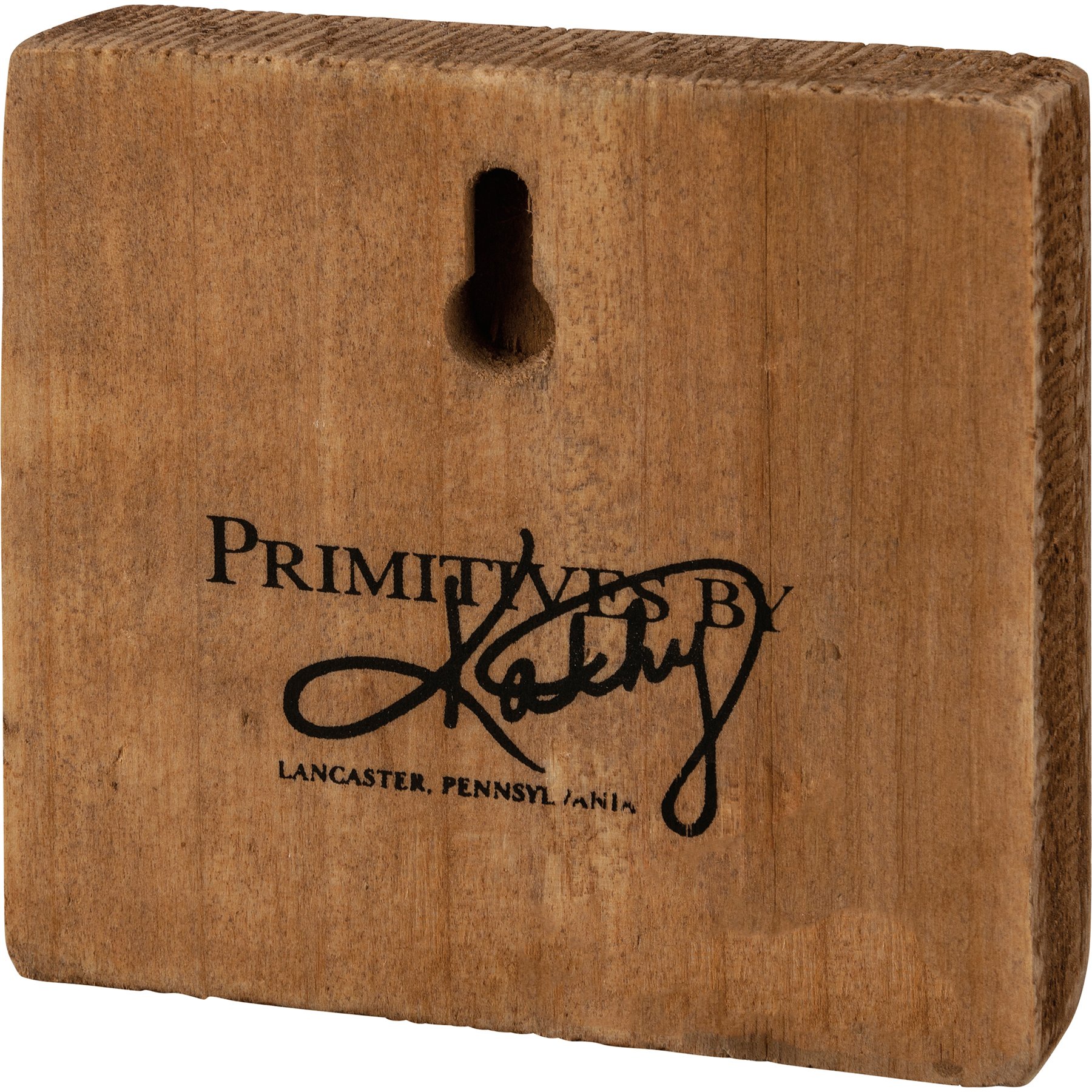 A wooden block sign featuring an orange pumpkin with cotton stem details. Design is replicated from original artwork painted onto burlap canvas, giving the art a unique depth and texture. Easy to hang via predrilled keyhole slot or can free-stand alone.