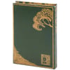 A decorative box from our Art Nouveau Collection displaying a book design inspired by art nouveau décor. Book box features a faux leather wrap displaying the exterior of a vintage "The Open Road" book with distressed details throughout an art nouveau inspired design of trees. Vintage book box also displays a coordinating design on its side for the title and author giving the appearance of a book spine when on a shelf. Front cover opens to reveal a velvet lined space for storing items with a magnet closure for secure storage when standing up. Our The Open Road book box can be used upright on a bookshelf or laid flat with the cover open displaying decorative accents inside. A vintage home accent perfect for storing keepsakes in style or for everyday home décor displays.