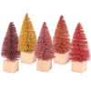A set of 12 bottle brush trees in assorted fall colors. Included in our Fall & Harvest Collection, the variety of colors give flexibility when coordinating with seasonal décor. Our Fall bottle brush trees are attached to natural wood cube bases to free-stand on flat surface. Seasonal bottle brush tree set is packaged in a kraft paper box to easily display on shelves. A set of seasonal home accents with a variety of display options.