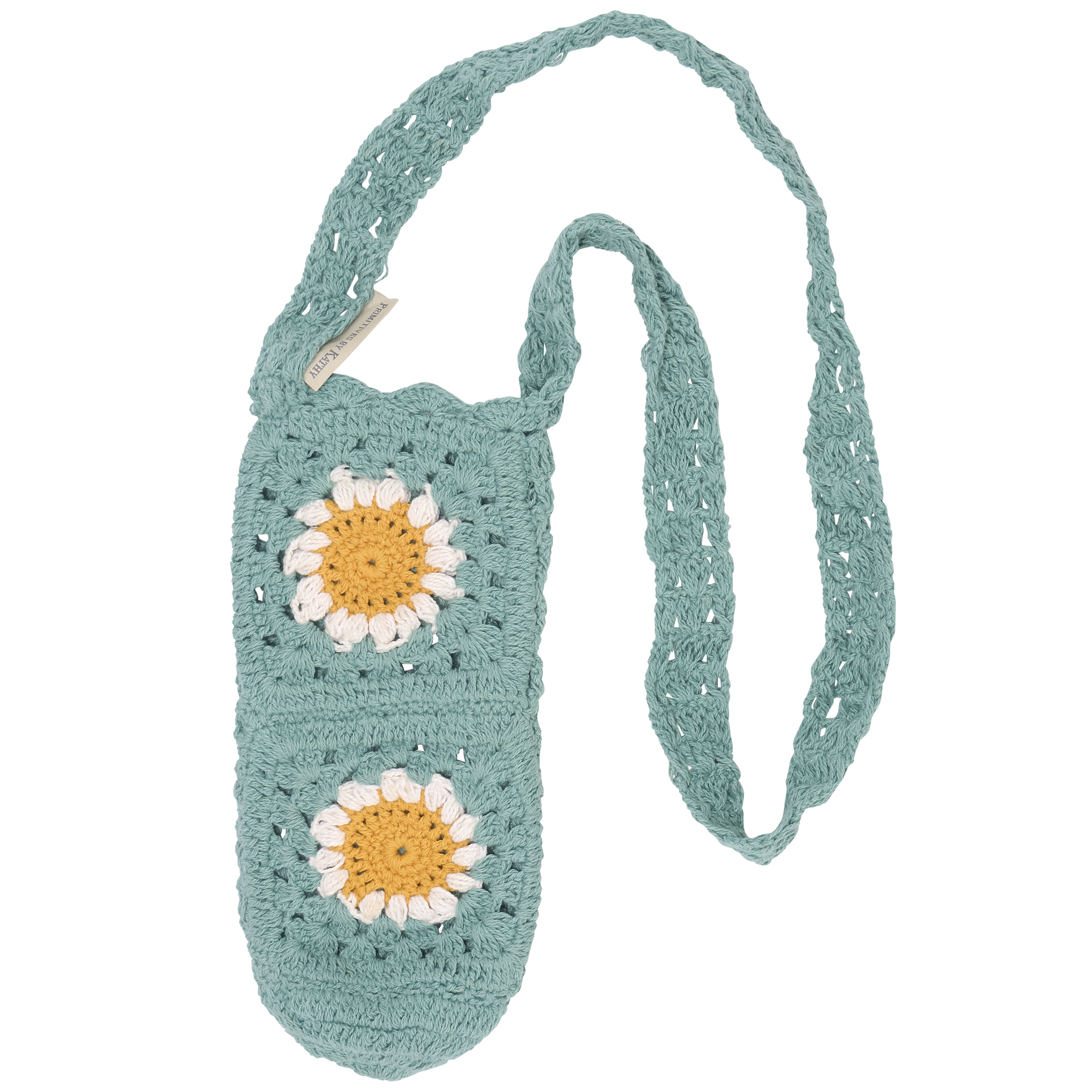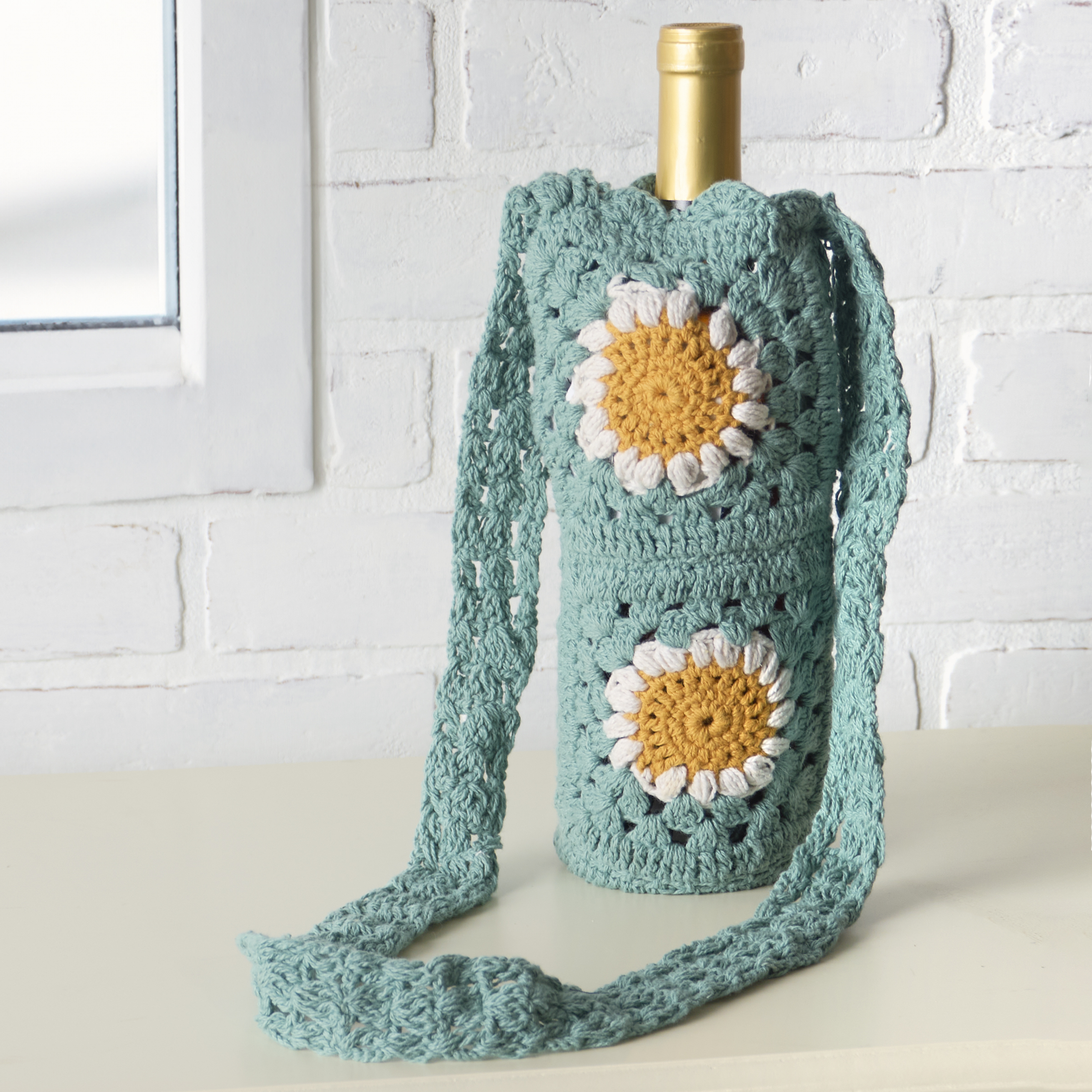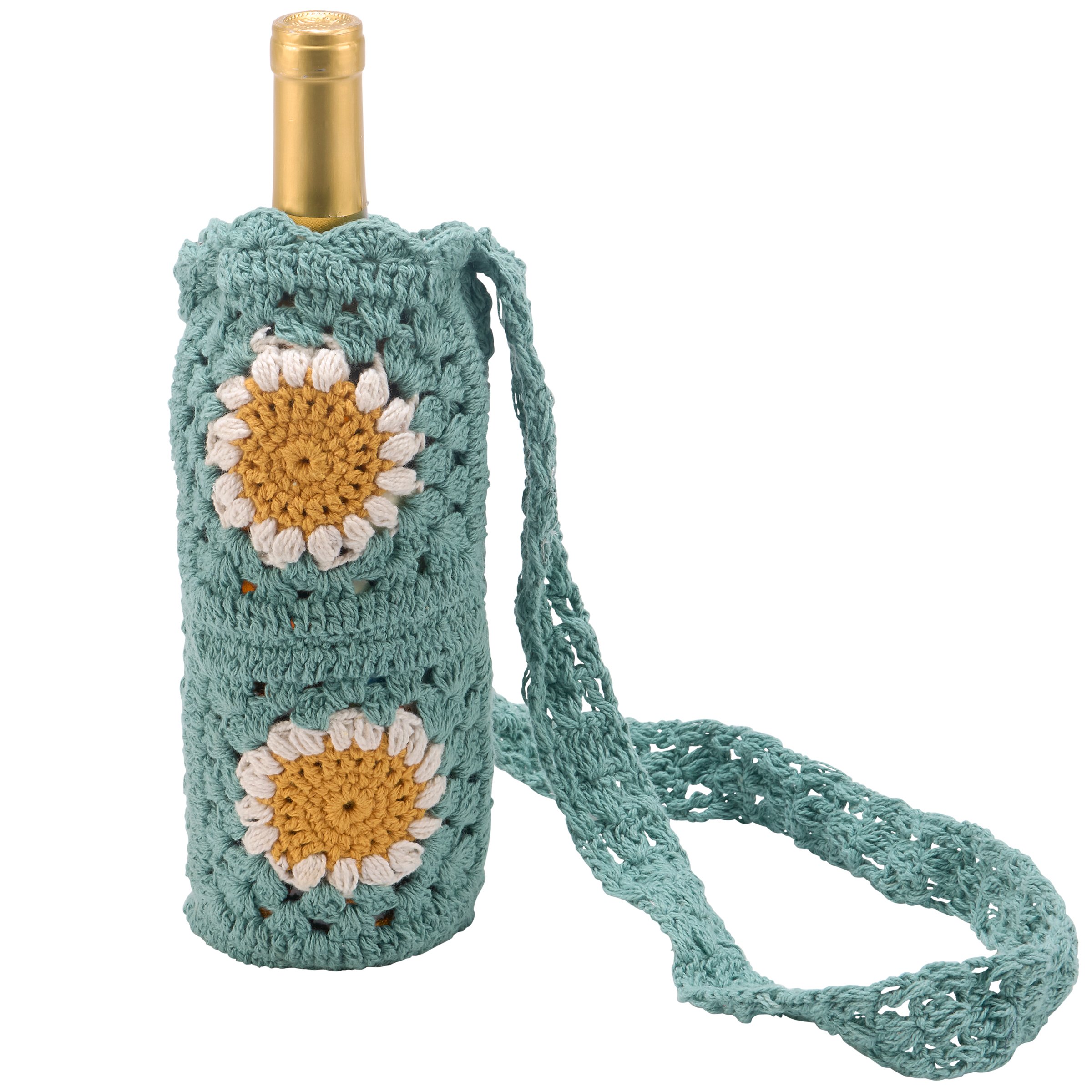 A stylish bottle holder from our Cottagecore Collection displaying unique crochet daisy designs as well as crochet patterns throughout. Our Daises bottle holder features a shoulder strap to easily hold a bottle of wine or insulated water bottle adding handmade style to a gift or travel. A stylish accessory perfect for everyday moments.