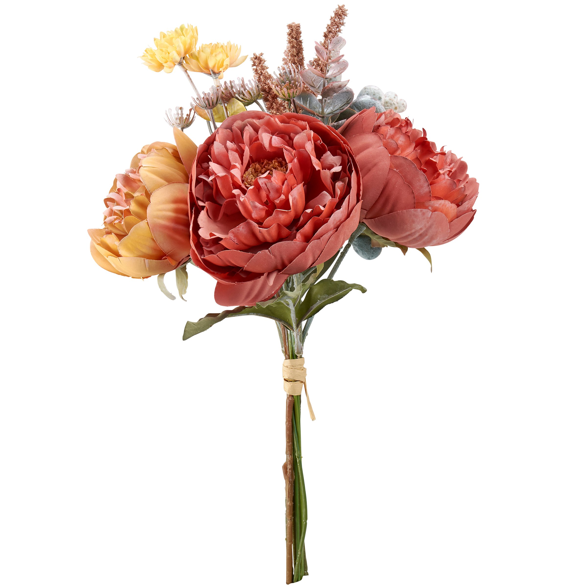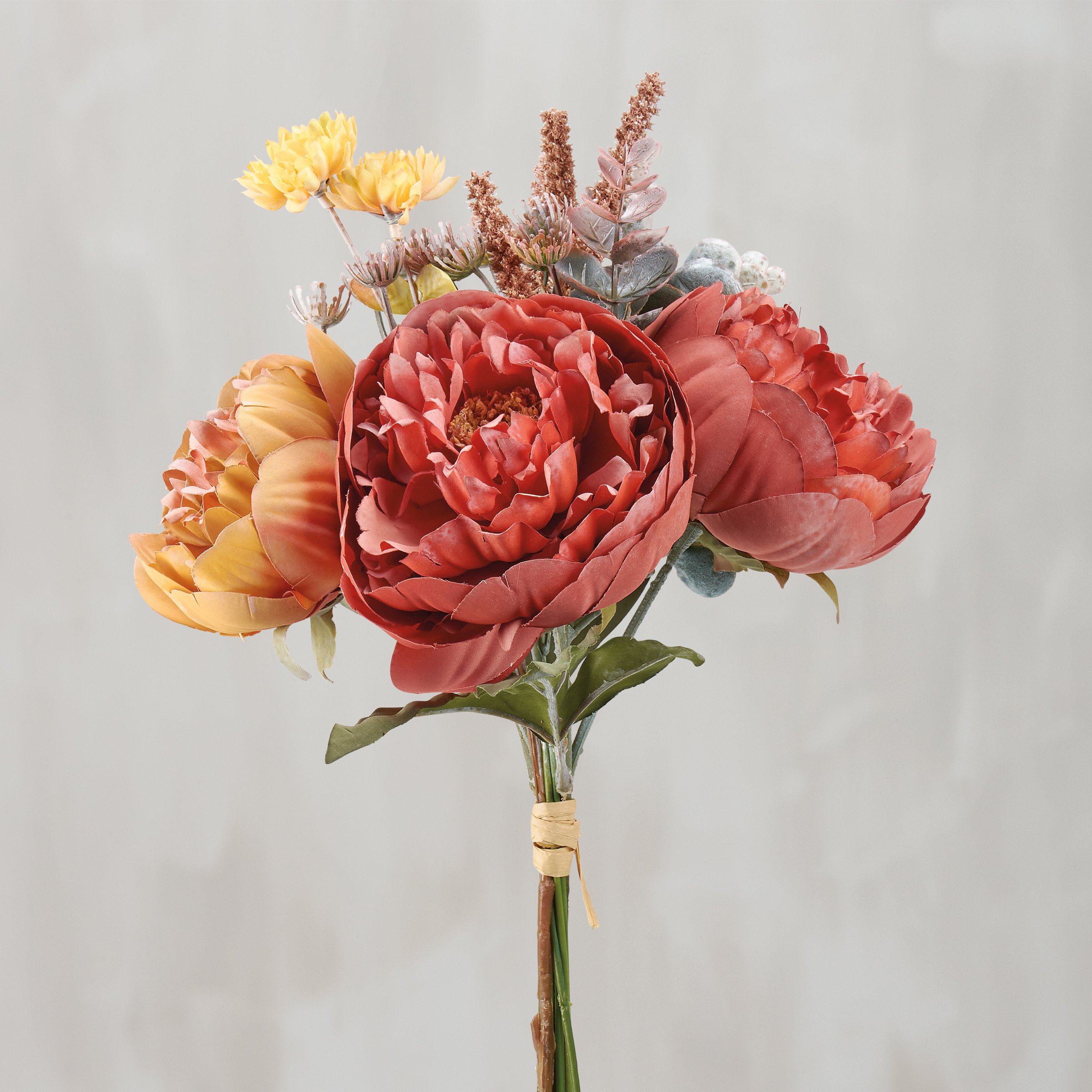 A bouquet of mixed peonies from our Botanical Collection that is perfect for adding to any vessel. Faux plants bring botanical vibes to any space with zero maintenance. Pair with other faux botanicals to create a rich, natural display without the worry of withering away. Our Bronzed Peony Mix bouquet stands 14 inches tall and complements well with décor from our Moody Collection.