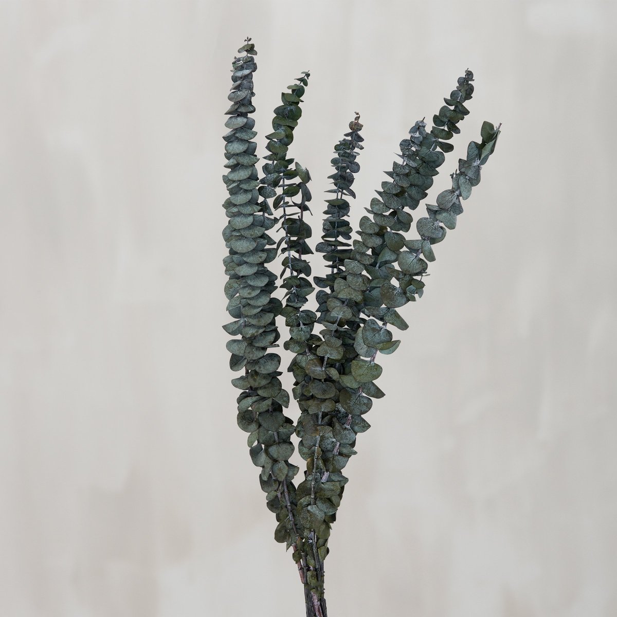 A bouquet of green eucalyptus from our Botanical Collection that is perfect for adding to any vessel. This dried eucalyptus bouquet is made with real natural foliage that is dried and preserved for long lasting arrangements with all the high-quality details of real plants. Pair with other dried or faux botanicals to create a rich, natural display without the worry of withering away. Our Green Eucalyptus bouquet stands 26.5 inches tall and complements well with décor from our Home Collection.