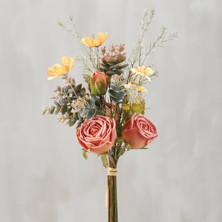 A bouquet of Peach Roses and complementing flowers from our Botanical Collection that is perfect for adding to any vessel. Faux plants bring botanical vibes to any space with zero maintenance. Pair with other faux botanicals to create a rich, natural display without the worry of withering away. Our Peach Rose bouquet stands 16 inches tall and complements well with décor from our Easter & Spring Collection.
