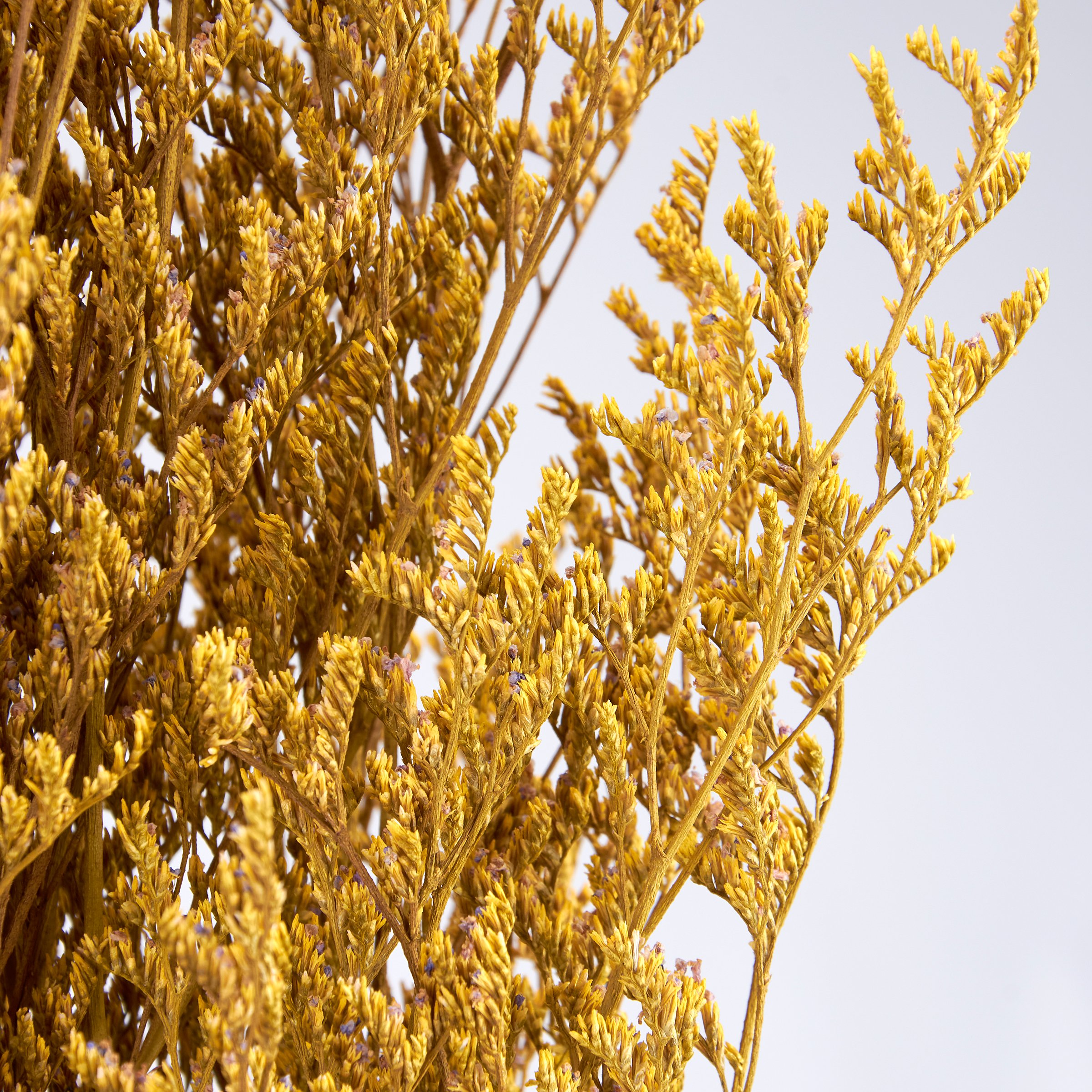 A bouquet of yellow caspia from our Botanical Collection that is perfect for adding to any vessel. This dried caspia bouquet is made with real natural foliage that is dried and preserved for long lasting arrangements with all the high-quality details of real plants. Pair with other dried or faux botanicals to create a rich, natural display without the worry of withering away. Our Yellow Caspia bouquet stands 27.5 inches tall and complements well with décor from our Home Collection.
