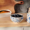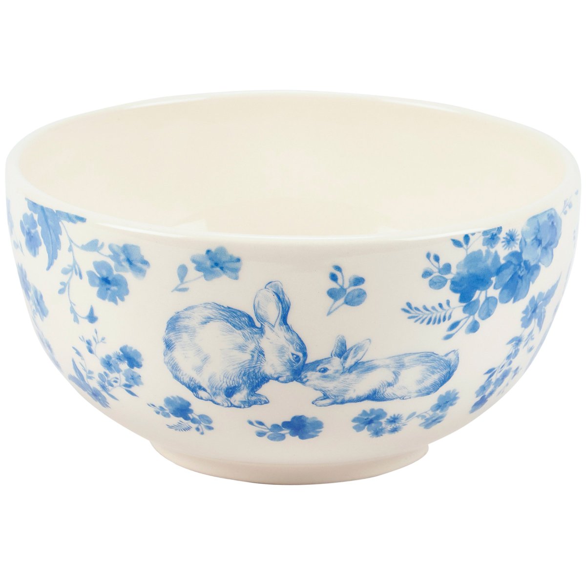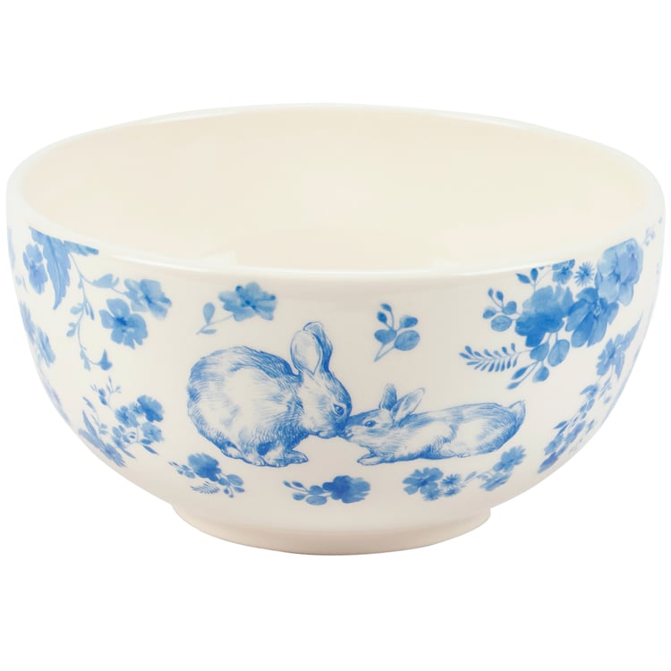 A lightweight, but durable ceramic bowl from our Easter & Spring Collection displaying a clean white glaze finish with indigo designs of florals and rabbits in a hand illustrated style. Our Blue Floral Rabbit bowl is hand wash only. A piece of vintage tableware perfect for spring gatherings.
