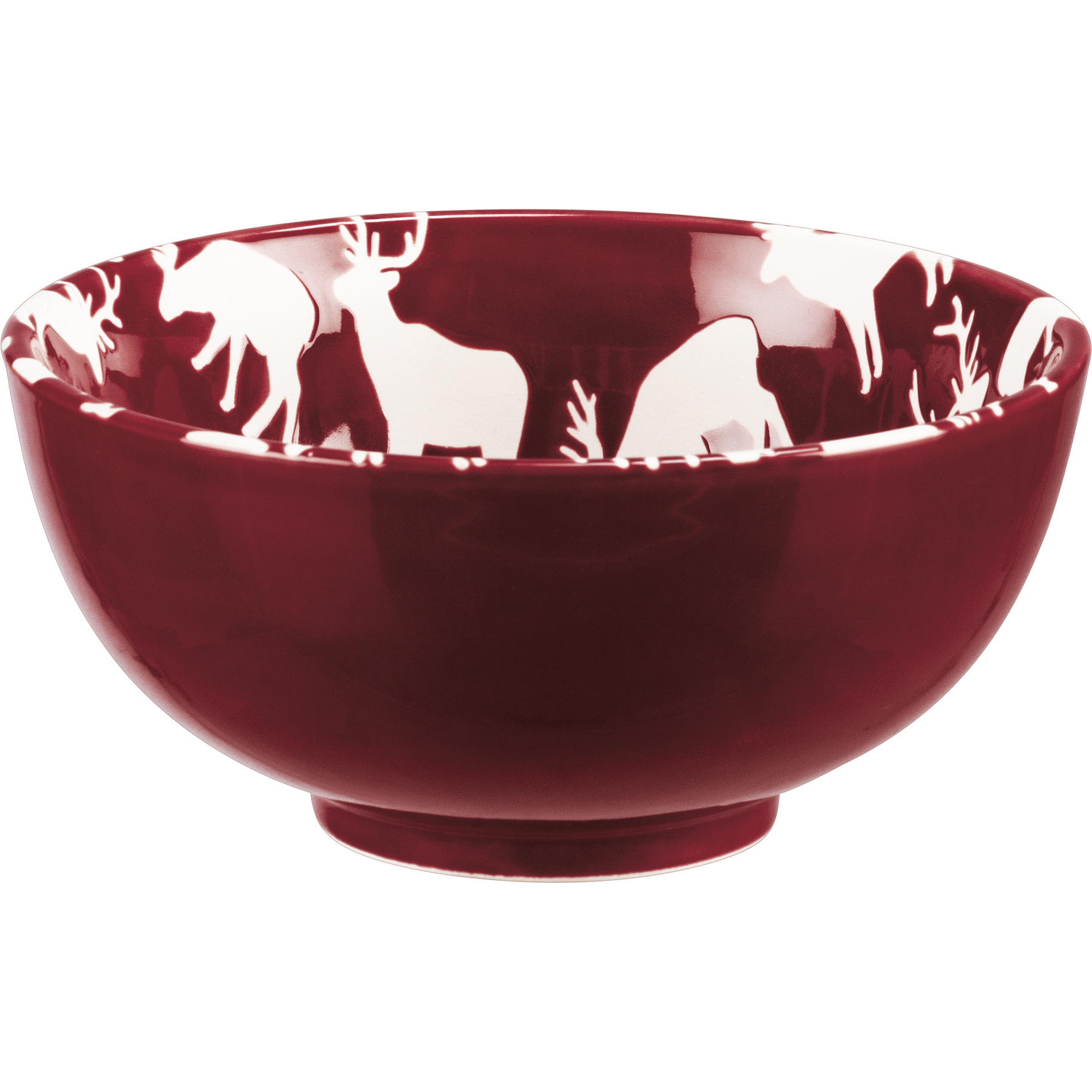 A set of three stoneware bowls from our Christmas Collection with holiday-inspired designs. Small and large bowls feature all-over snowflake design. Medium bowl features all-over deer design. This Christmas bowl set is microwave, dishwasher, and food safe.