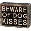 A classic black and white wooden box sign from our Pet Collection displaying a rustic design with a fun pet inspired sentiment that reads "Beware Of Dog Kisses." Funny pet box sign features distressed details with coordinating black color on sides and back. Our Beware of Dog Kisses sign is easy to hang or can free-stand alone. A fun pet-themed gift that can be easily displayed in any home or work space.