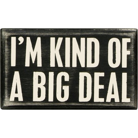 A classic black and white wooden box sign featuring a distressed "I'm Kind Of A Big Deal" sentiment. Easy to hang or can free-stand alone.