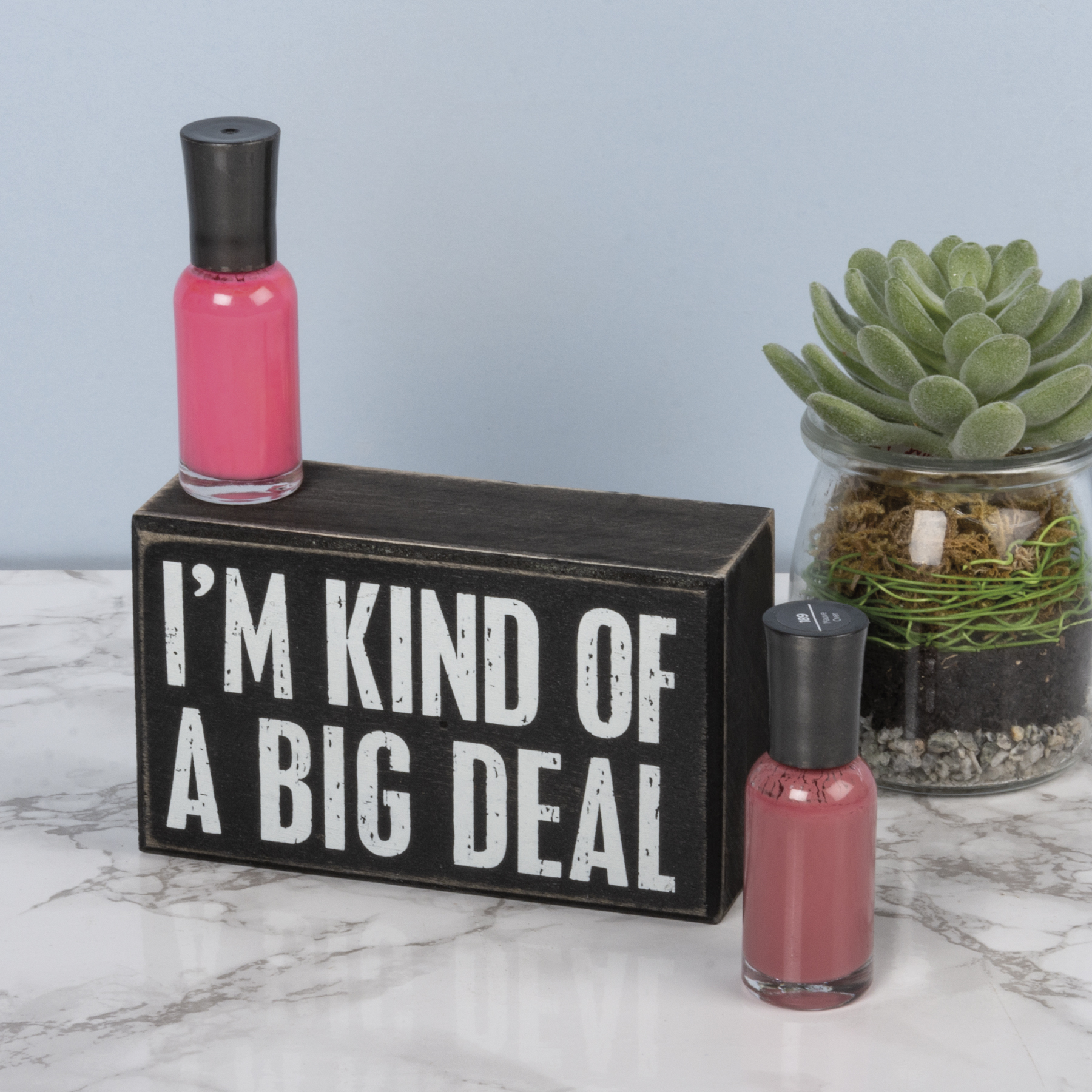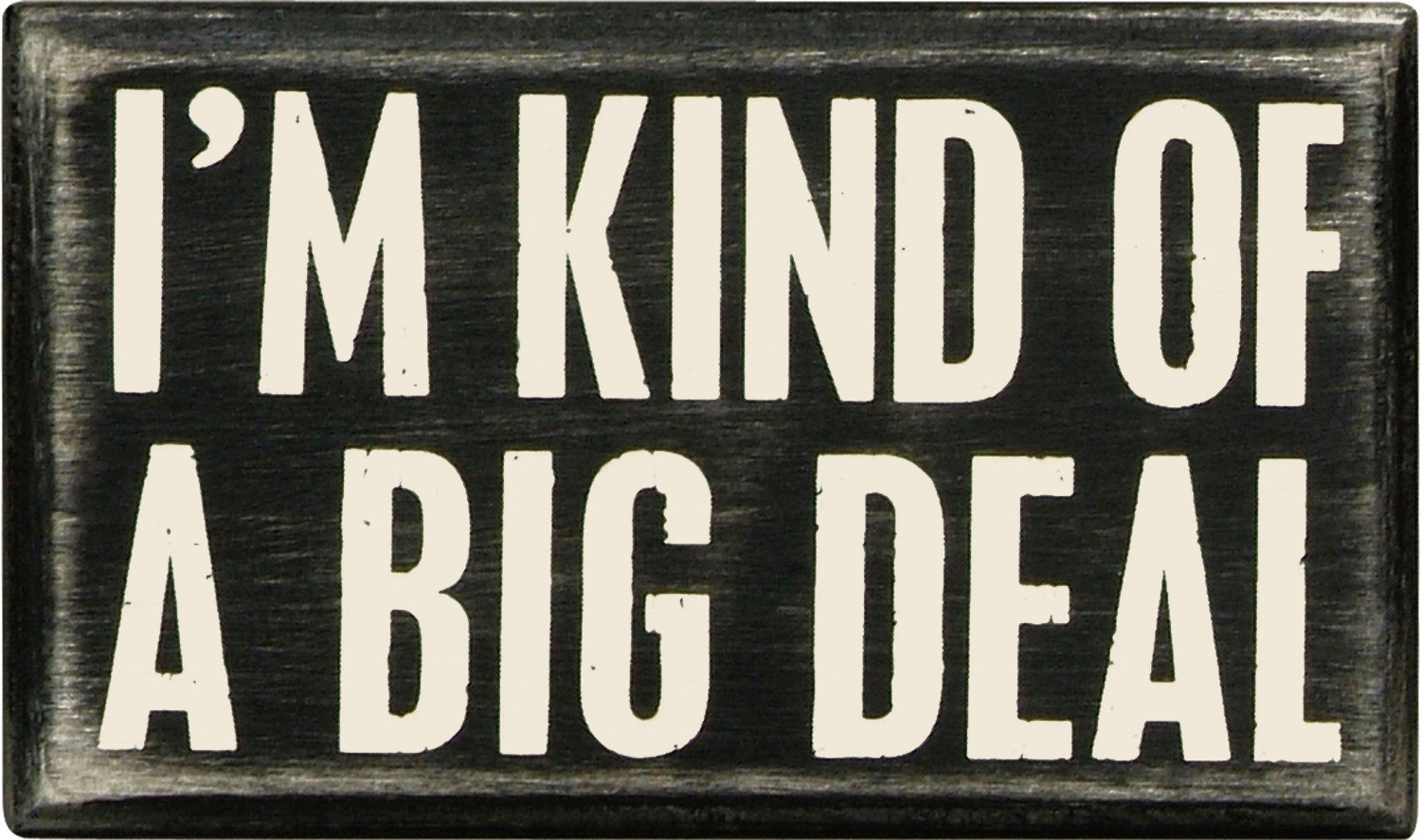 A classic black and white wooden box sign featuring a distressed "I'm Kind Of A Big Deal" sentiment. Easy to hang or can free-stand alone.