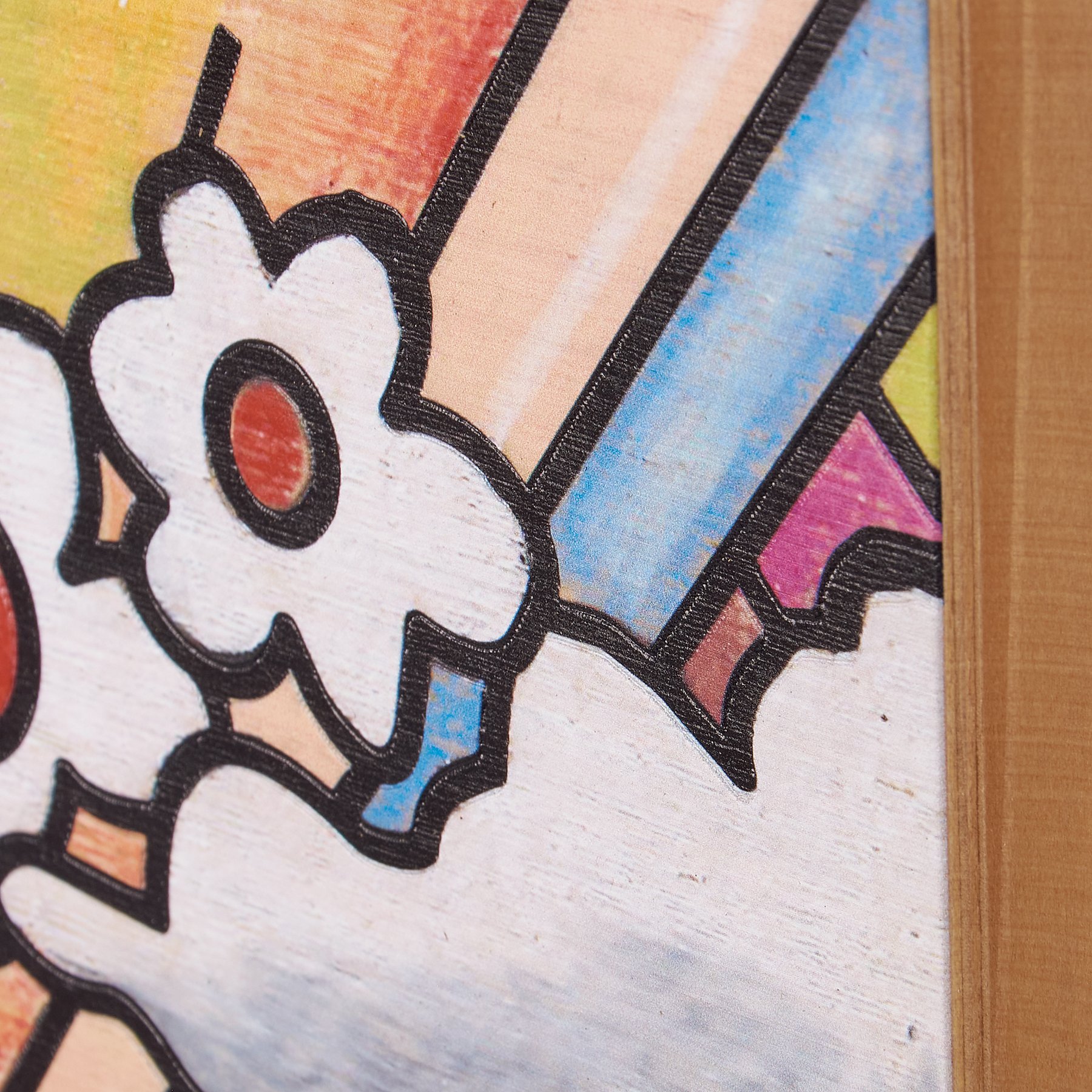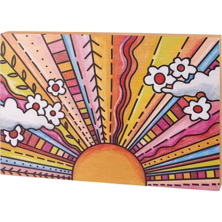 Brighten the room with this shining wooden box sign displaying original artwork from our Artist Collective Collection focused on inspiration of the sun. The floral sun box sign features wood burn style design for added texture. Easy to hang or can free-stand alone.