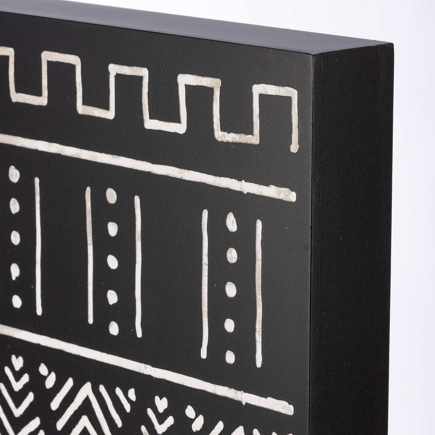 A wooden box sign from our Artisanal Prints Collection features debossed artisanal designs. Our Mud Cloth box sign is easy to hang or can free-stand alone.