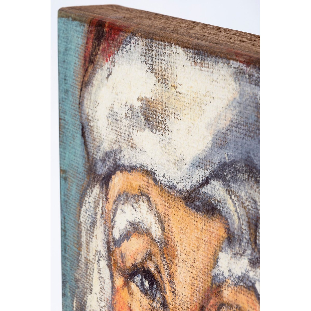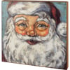 A wooden box sign from our Christmas Collection featuring a Santa painting. Design is replicated from original artwork painted onto burlap canvas, giving the art a unique depth and texture. Easy to hang or can free-stand alone.