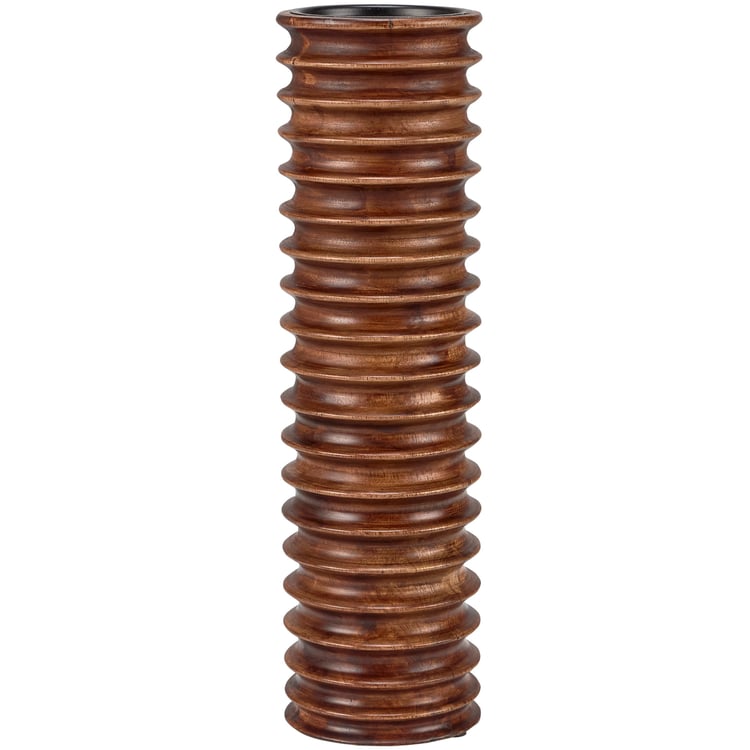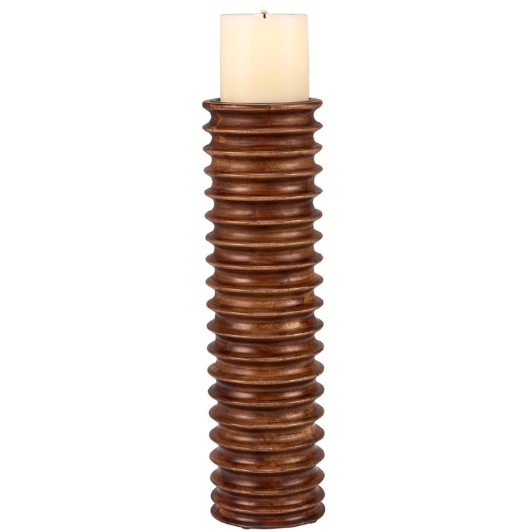A wooden candle holder that coordinates well with décor from our Primitive Collection. Candle holder features dark stain wood with a tall accordion shape and space at the top for a single candle. Our Accordion candle holder fits a candle up to 3.5 inches and can free-stand on flat surface. Candle pictured not included. A rustic home accent perfect for adding natural lighting to any living space.