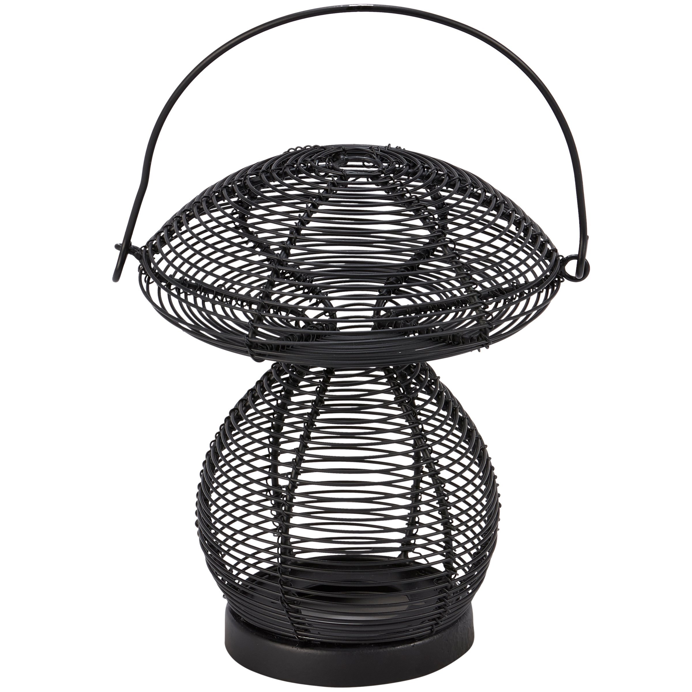 A metal candle holder from our Cottagecore Collection displaying a wire frame design in the shape of a mushroom. Base of mushroom candle holder features a rotating removable slot for a single candle. Our Mushroom candle holder fits a standard tealight candle and can free-stand on flat surface. Candle pictured not included. A nature-themed home accent for adding natural lighting to any living space.