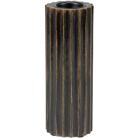 A wooden candle holder that coordinates well with décor from our Primitive Collection. Candle holder features dark wood with distressed details and a ribbed cylinder shape leading up to space at the top for a single candle. Our Ribbed Cylinder candle holder fits a tealight candle and can free-stand on flat surface. Candle pictured not included. A rustic home accent perfect for adding natural lighting to any living space.
