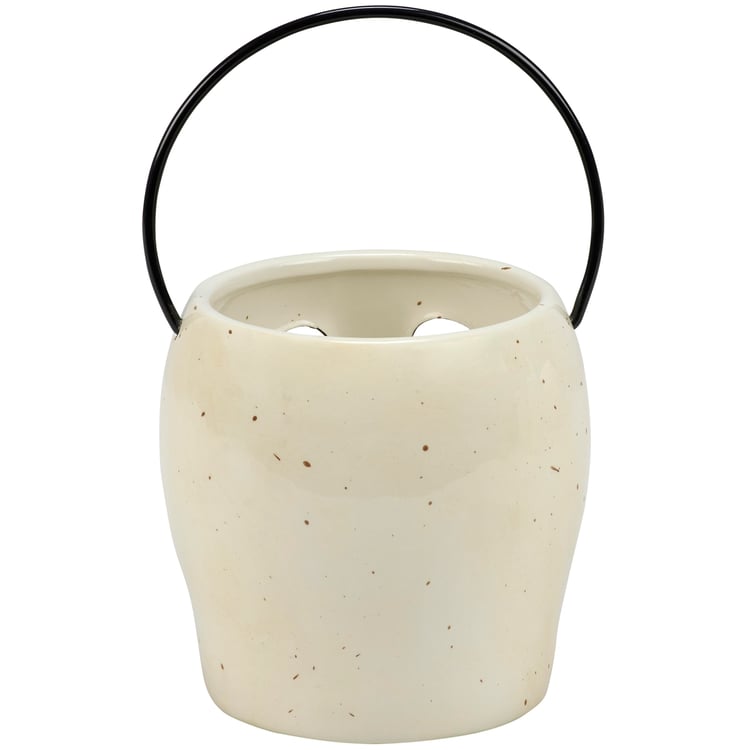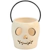 A ceramic candle holder that coordinates well with décor from our Halloween Collection. Seasonal candle holder features a fun skeleton head lantern design with an opening on the top to place a single candle inside and illuminate face cutouts. Our Skeleton Head candle holder fits a votive candle and can free-stand on flat surface for display. Candle pictured not included. A fun Halloween home accent perfect for adding natural lighting to any space.