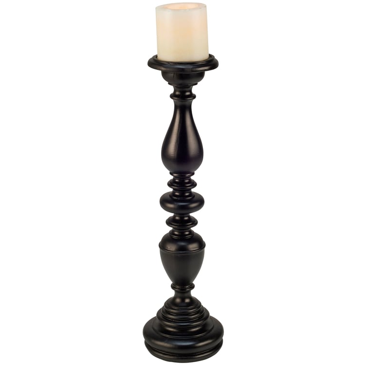 A candle holder from ourĀ Home Collection featuring a dark black color and tall classic candlestick design with space at the top for a single candle. Our Tall Classic candle holder fits a candle up to 3 inches and can free-stand on flat surface. Candle pictured not included. A stylish home accent perfect for adding natural lighting to any living space.