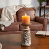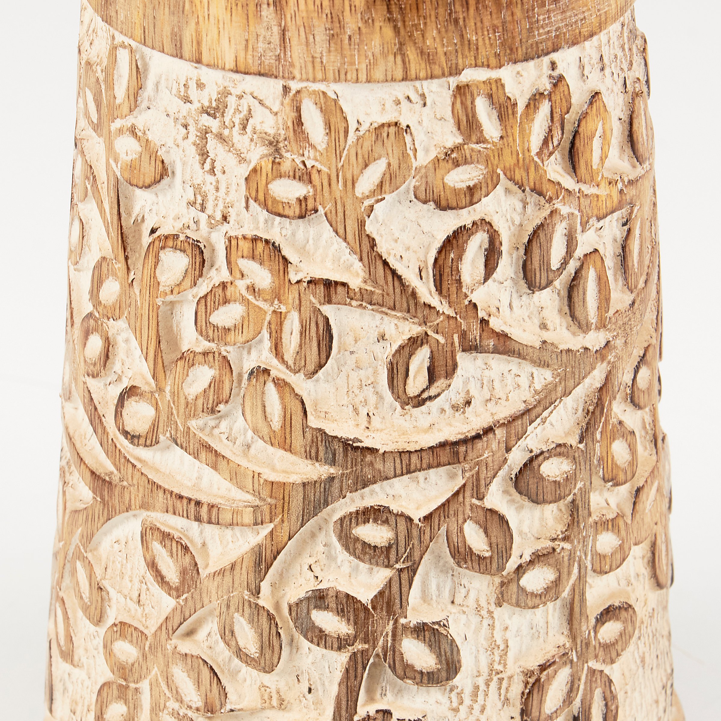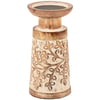 A wooden candle holder from ourĀ Home Collection featuring sculpted tree branch designs throughout with distressed details and space at the top for a single candle. Our Tree candle holder fits a candle up to 3.5 inches and can free-stand on flat surface. Candle pictured not included. A classic home accent perfect for adding natural lighting to any living space.