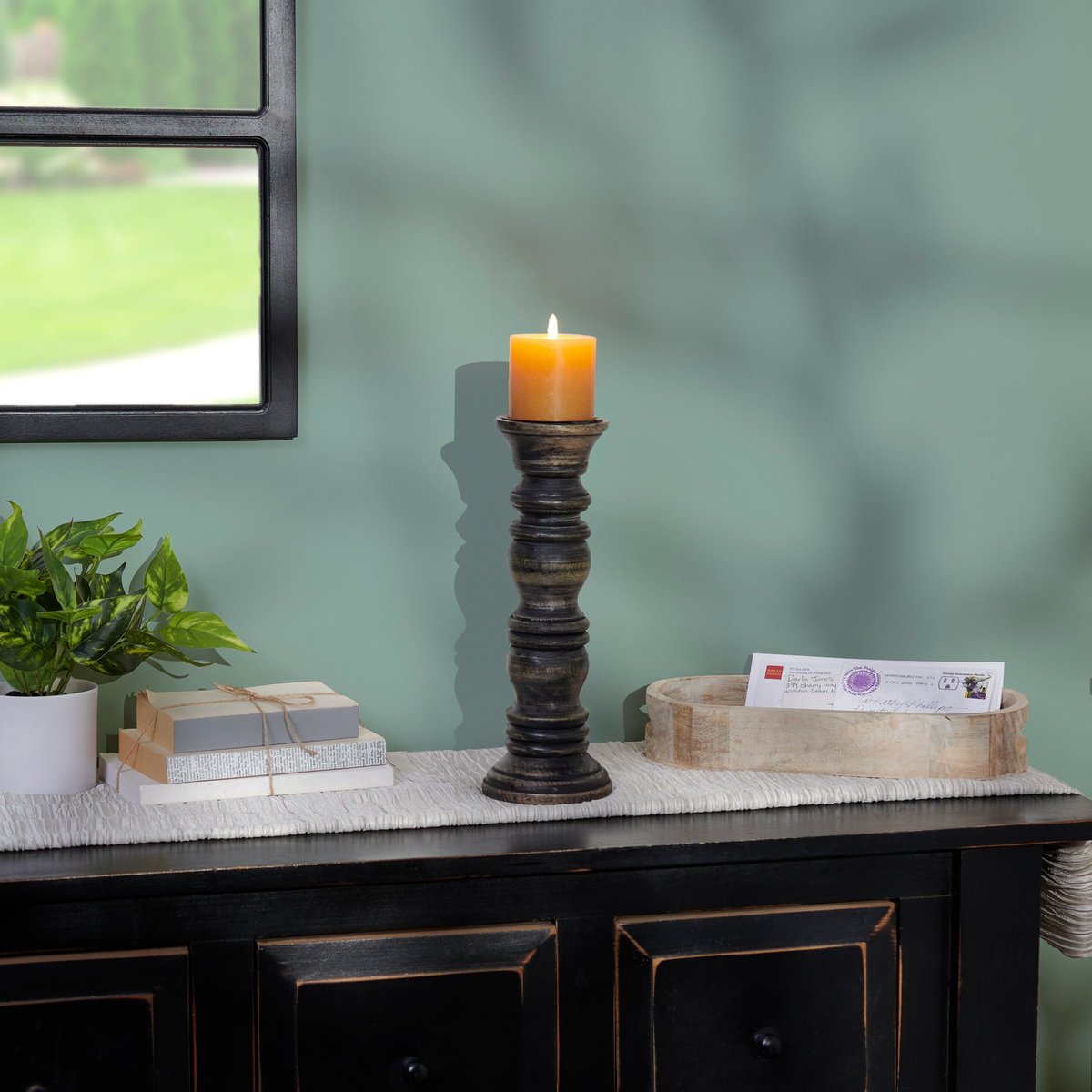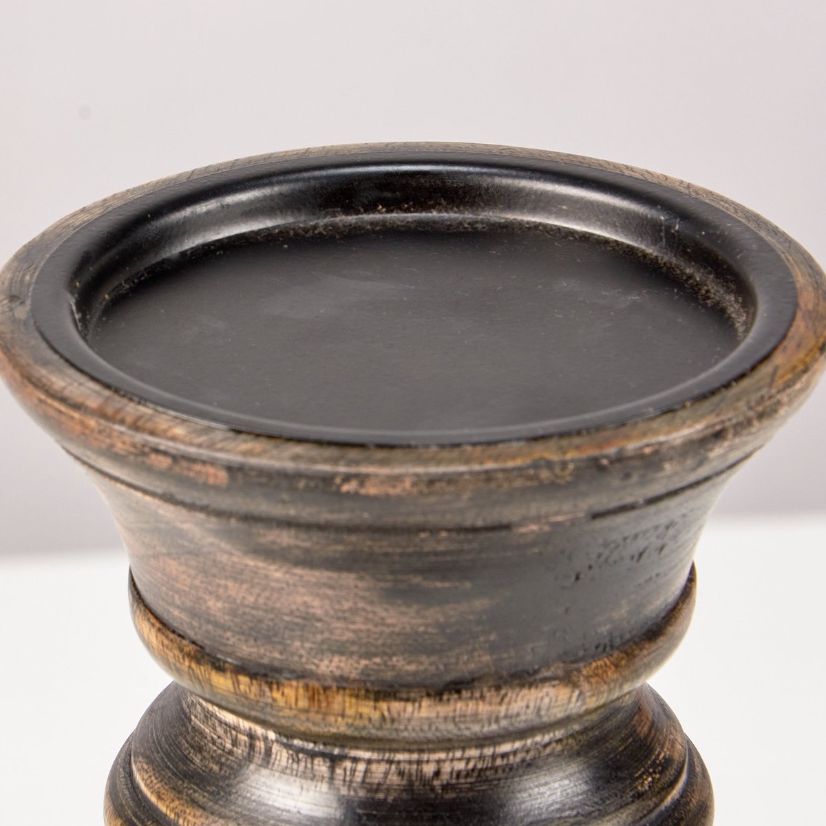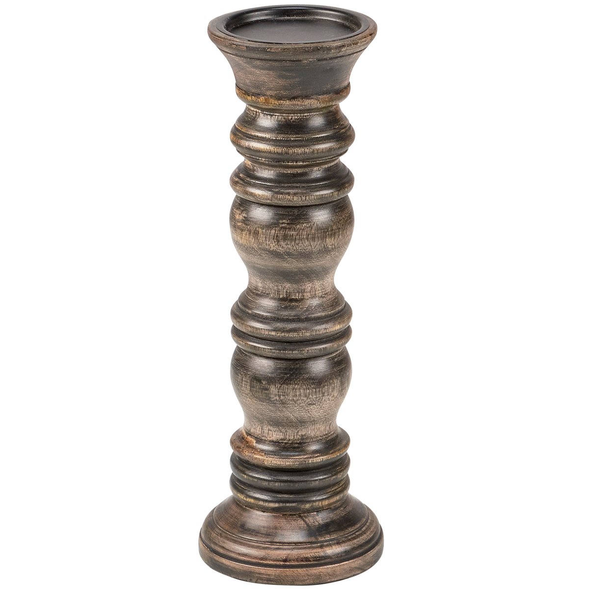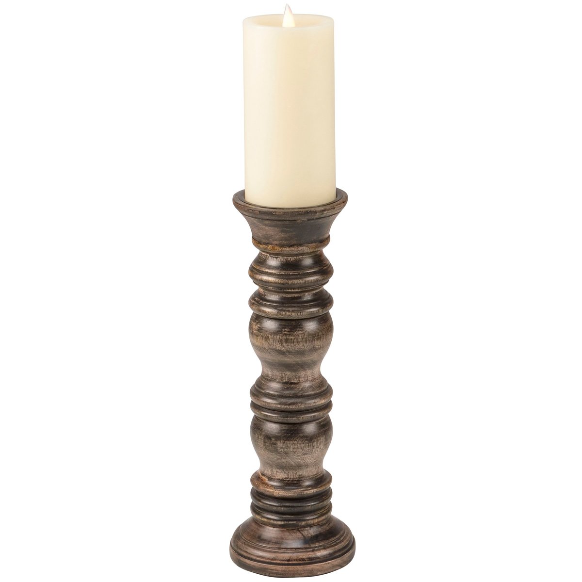 A wooden candle holder from ourĀ Home Collection featuring a dark mango wood and classic candlestick design with space at the top for a single candle. Our Turned Mango Wood candle holder fits a candle up to 4 inches and can free-stand on flat surface. Candle pictured not included. A rustic home accent perfect for adding natural lighting to any living space.