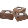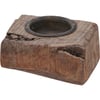 An antique candle holder from our Primitive Collection displaying a natural wood block design with a metal candle holder made from recycled antique items. Each antique wood block candle holder features natural wood and metal accents with distressed details for an aged appearance. Candle holder is designed to hold one tealight size candle. Candles pictured not included. This item is an authentic import from India making each piece unique with varying details like color, style, and size. Due to the method in which this item is made, we cannot guarantee similar details among multiple items. Our Wood Block candle holder is designed to free-stand on any flat surface for display. A rustic everyday home accent perfect for adding natural lighting to any space.