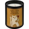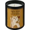 A matte black glass vessel holds this soy-based wax candle from our Pet Collection with a refreshing French Vanilla scent. Rustic double-sided art features "Light This Drink Wine And Pet The Cat" sentiment and coordinating cat and wine glass designs. The Pet The Cat candle is 8 oz. and contains a single fabric wick for a total of 35 hours of burn time. Includes a plastic wax cover for protection and a polished look.