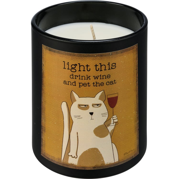 Product Text: LIGHT THIS DRINK WINE AND PET THE CAT