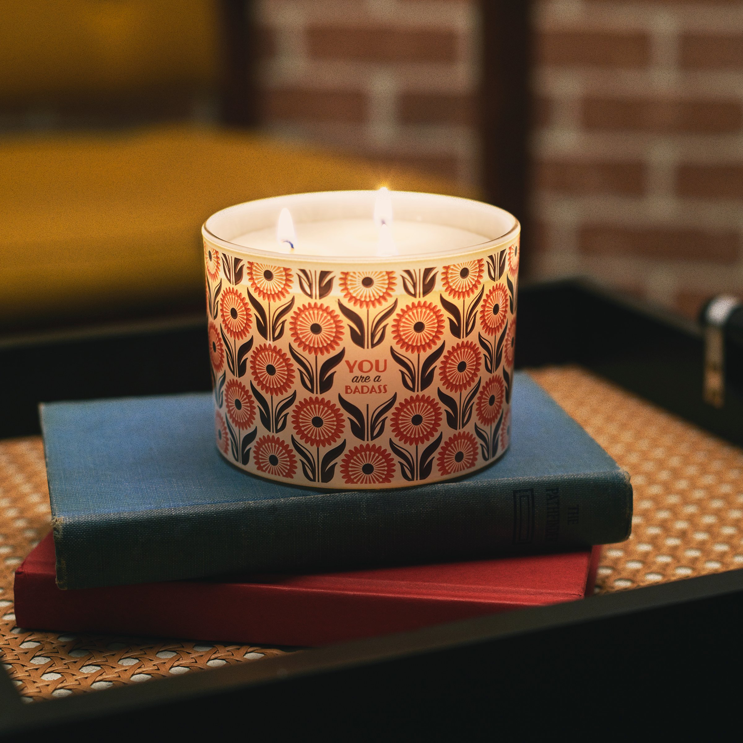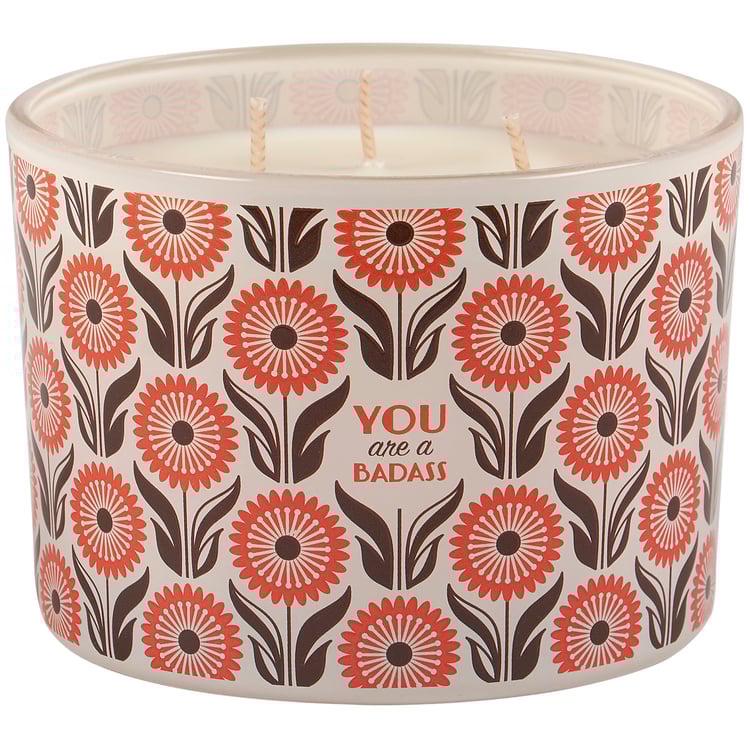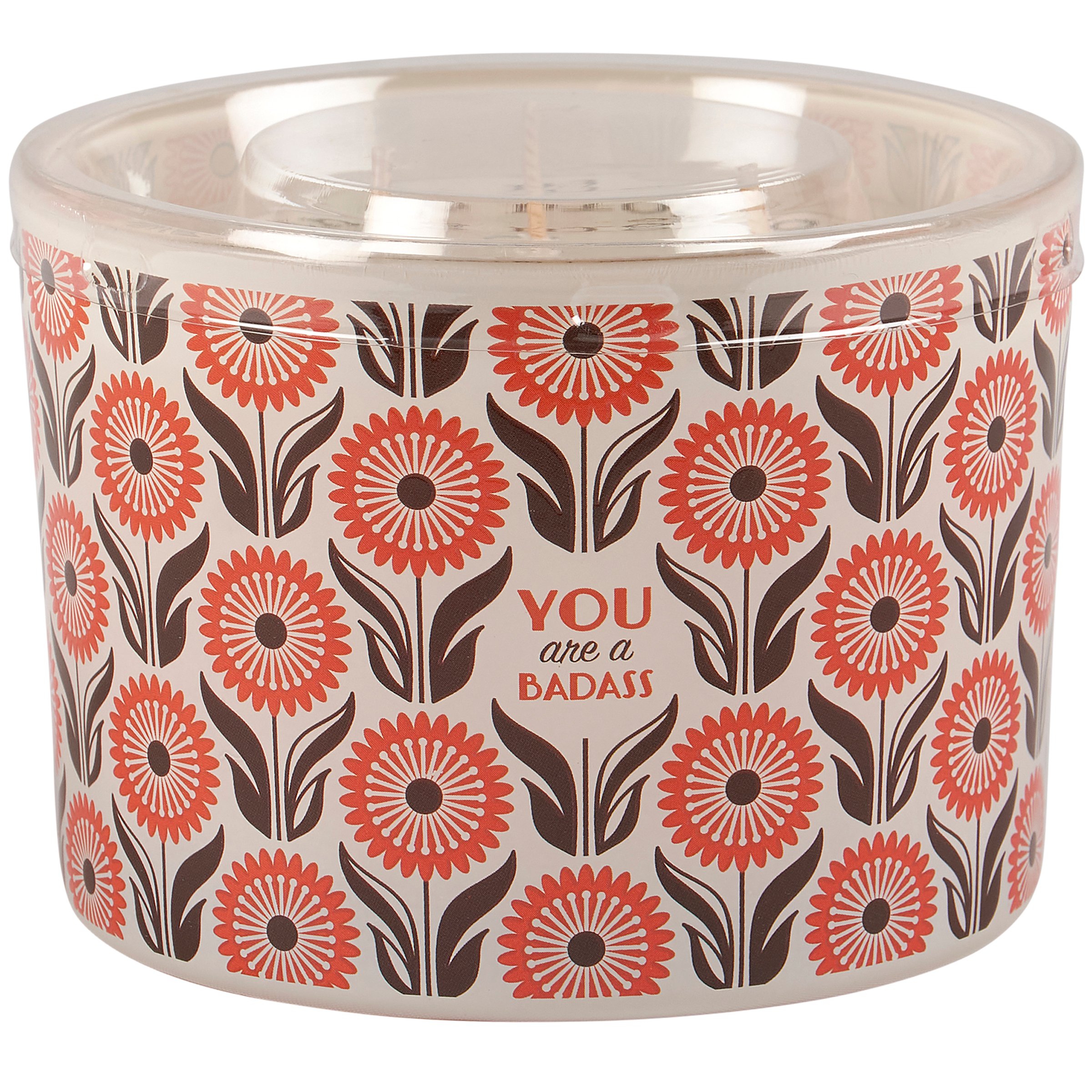Anyone else done with keeping every little thought to themselves? This jar candle confidently displays "You Are A Badass" with a stylish floral pattern on frosted glass. Stylish candle features soy-based wax and 3 fabric wicks with 30 hours of burn time activating a refreshing Orange Blossom scent. Questionables jar candles include a dust cover and plastic lid for protection and polished appearance. Our You Are A Badass jar candle is a home accent that demands attention and lets everyone know that everyday life can be hard, but you got this. Great for gifting!
