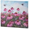 A canvas wall décor piece from our Garden Collection displaying a calming scene of pink coneflowers and bees. Coneflower design is replicated from original artwork painted onto burlap canvas, giving the art a unique depth and texture. Our Pink Coneflower canvas wall art is easy to hang via attached sawtooth hanger. A charming garden-themed home accent perfect for everyday display.